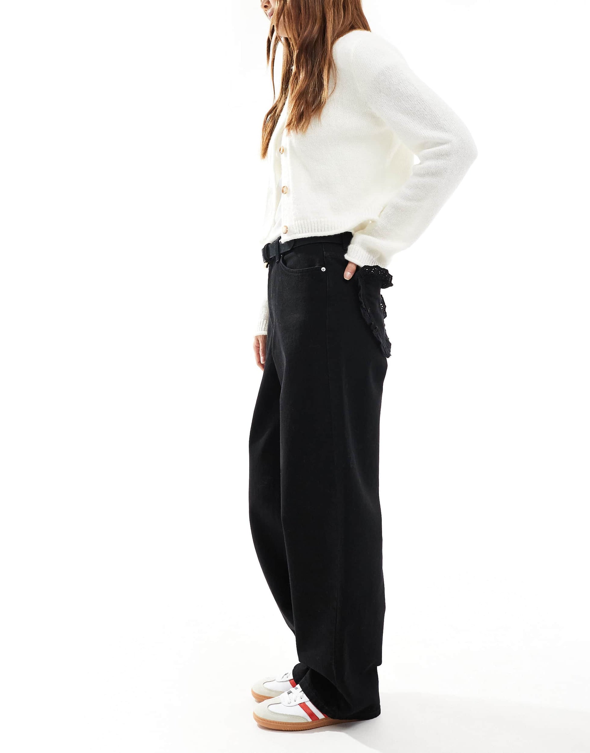 Miss Selfridge broderie heart pocket baggy jean in black wash
