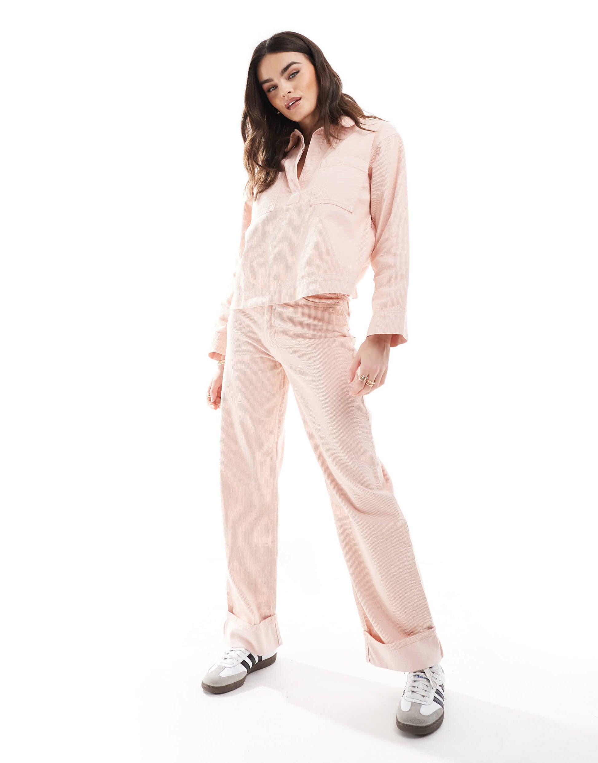 Corduroy: ribbed, velvet-feel texture Main: 100% Cotton.