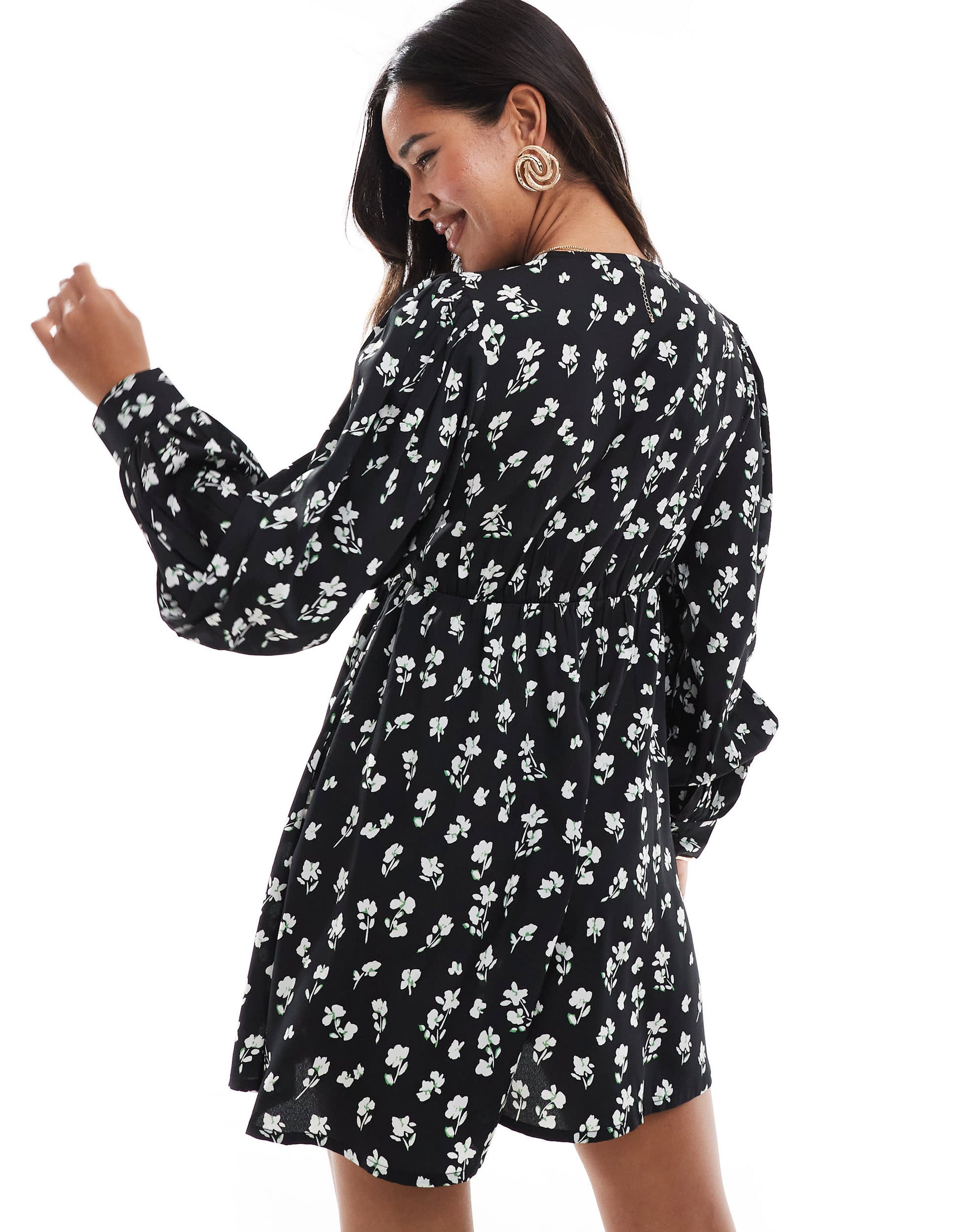 Wednesday's Girl ditsy floral smock mini dress in black and white
