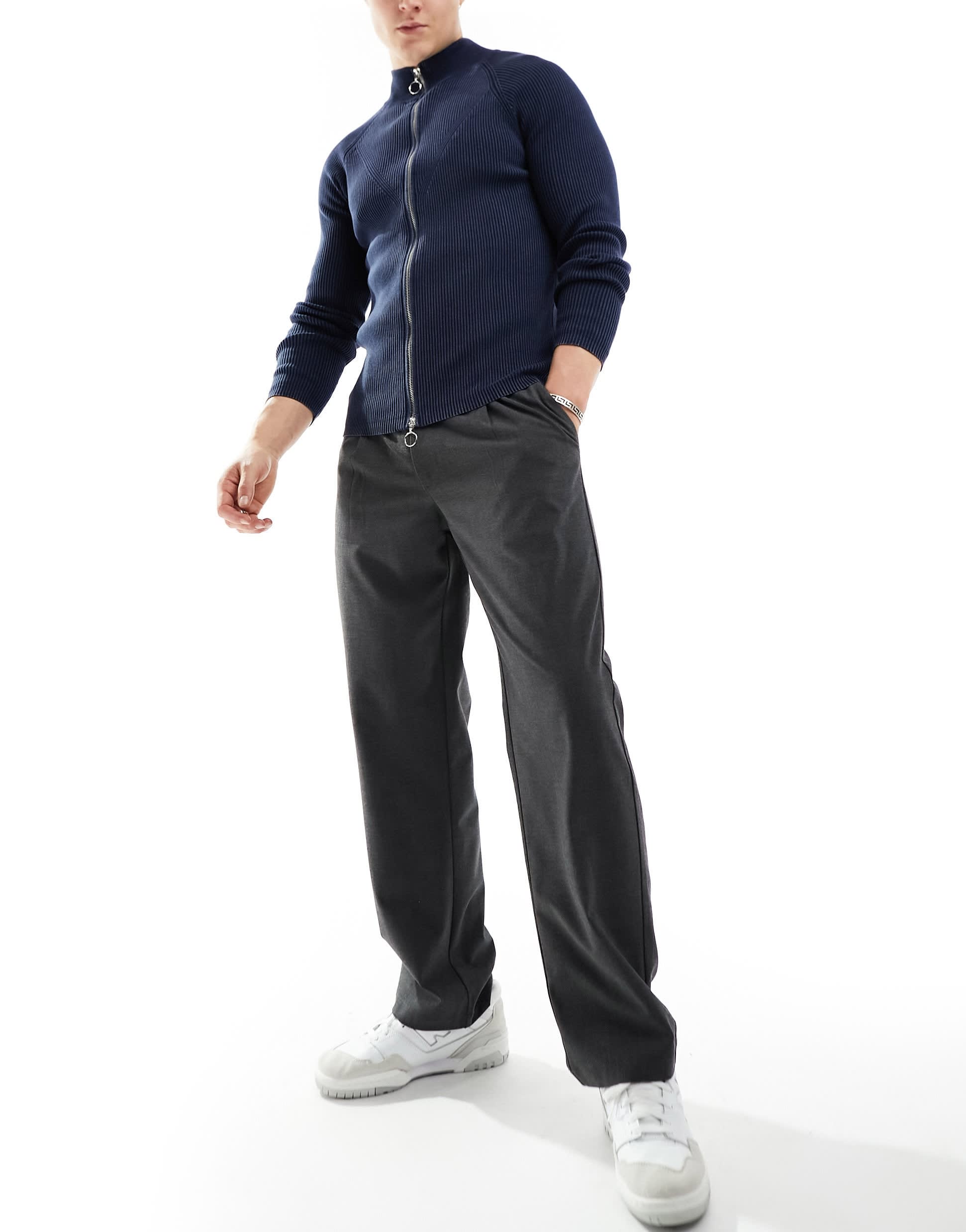 Bershka wide leg tailored trouser in charcoal exclusive to asos