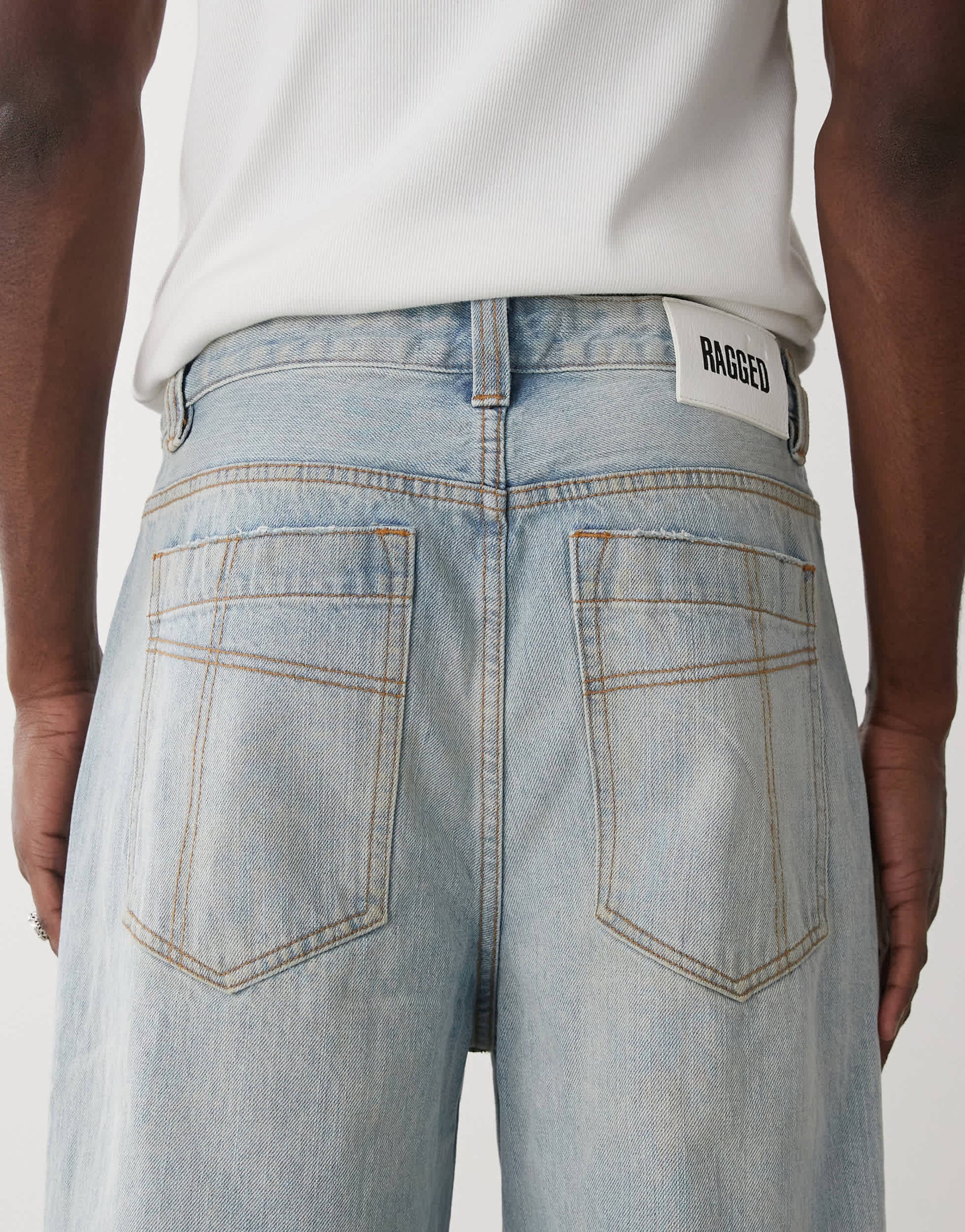 Non-stretch denim: light-blue wash Main: 100% Cotton.