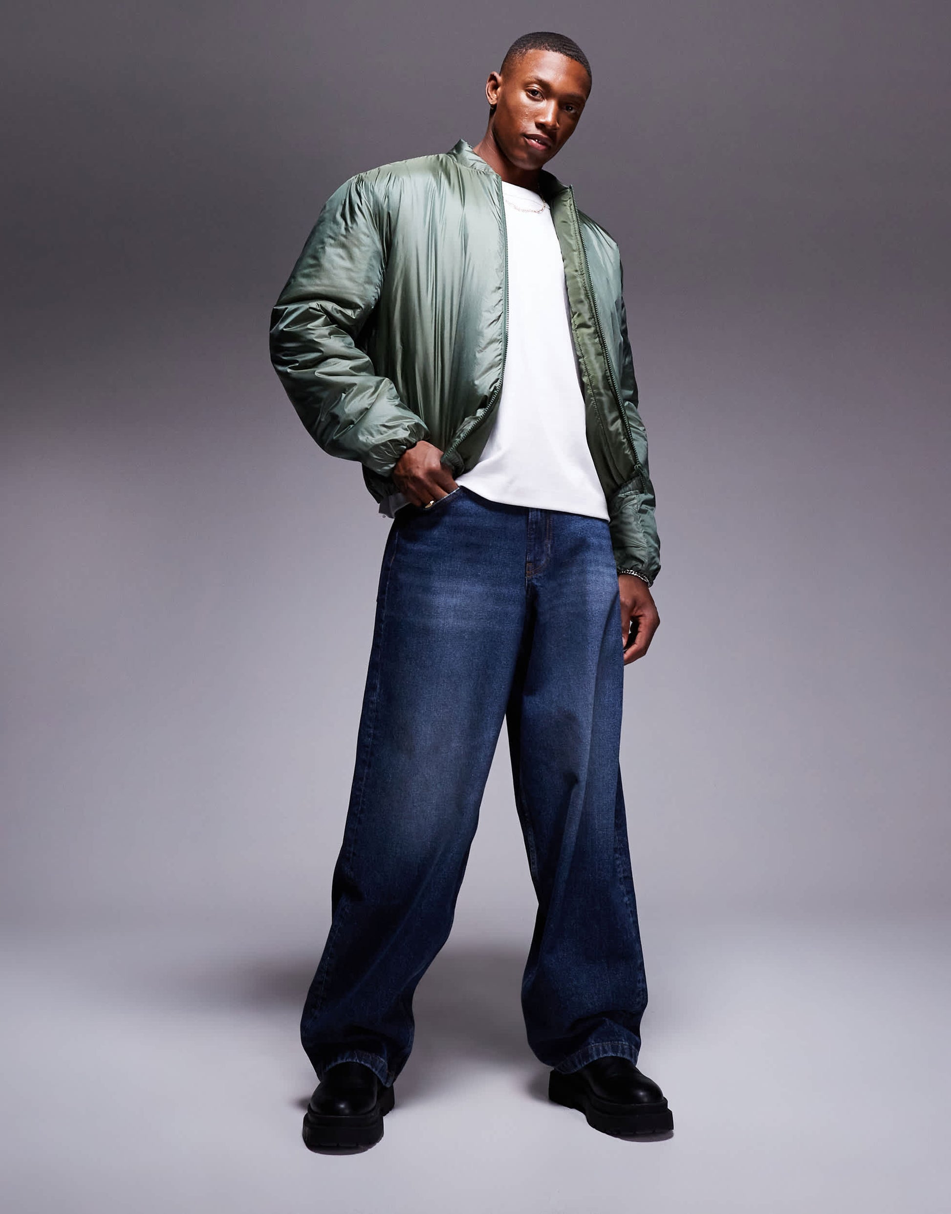 ASOS DESIGN oversized mono wadded puffer jacket in metallic green