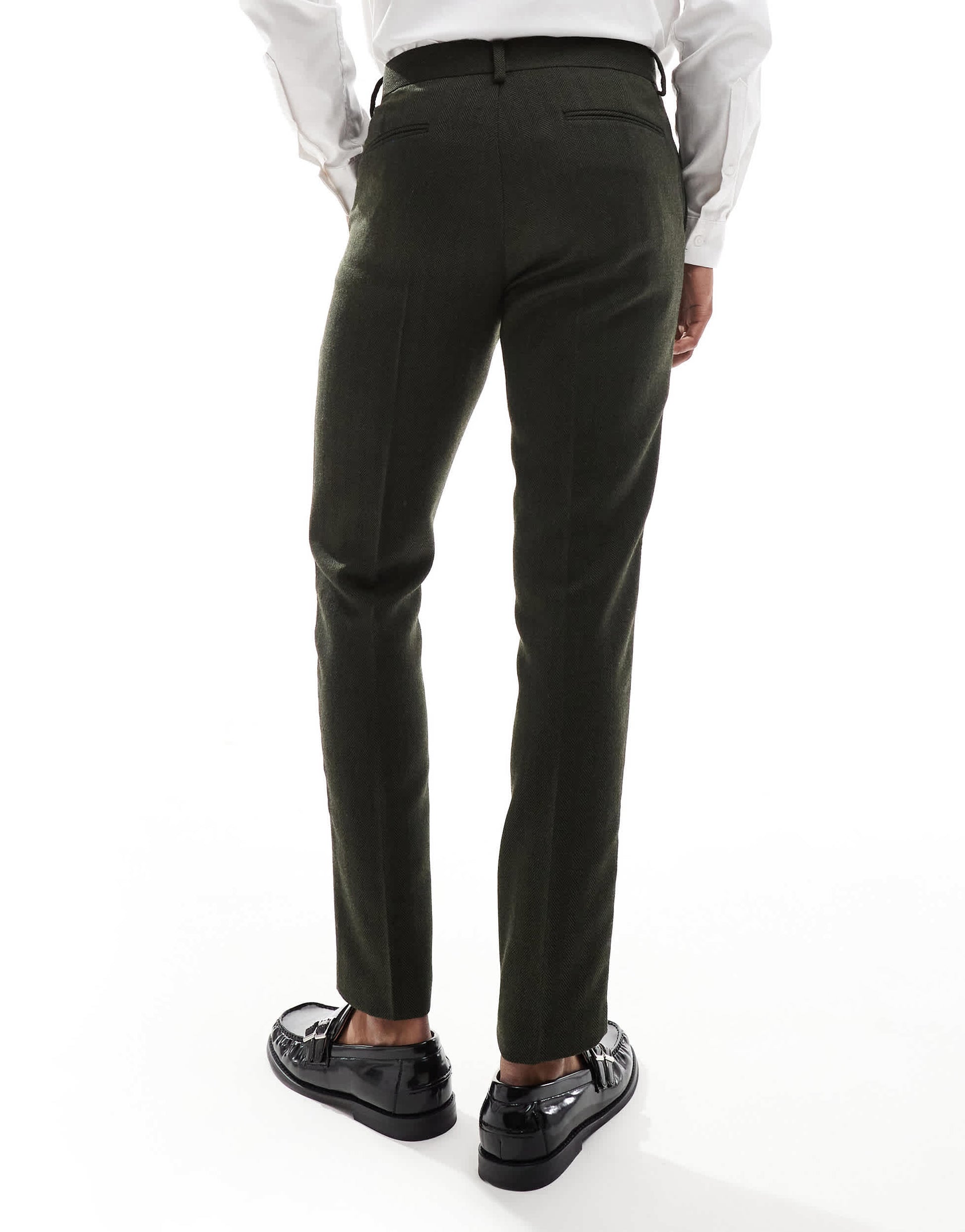 ASOS DESIGN new skinny suit trousers in wool blend olive green herringbone