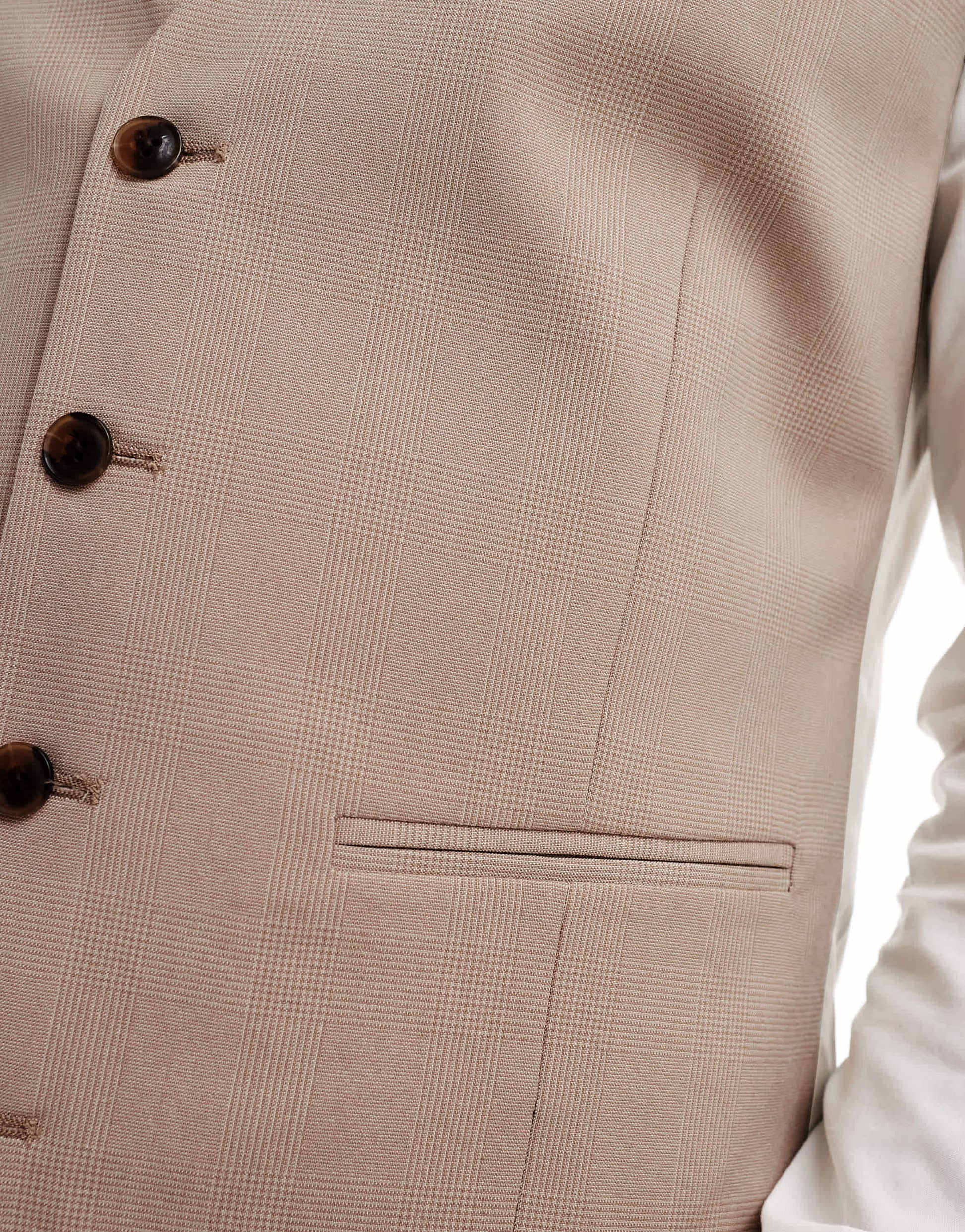 ASOS DESIGN slim suit waistcoat in tonal neutral prince of wales check
