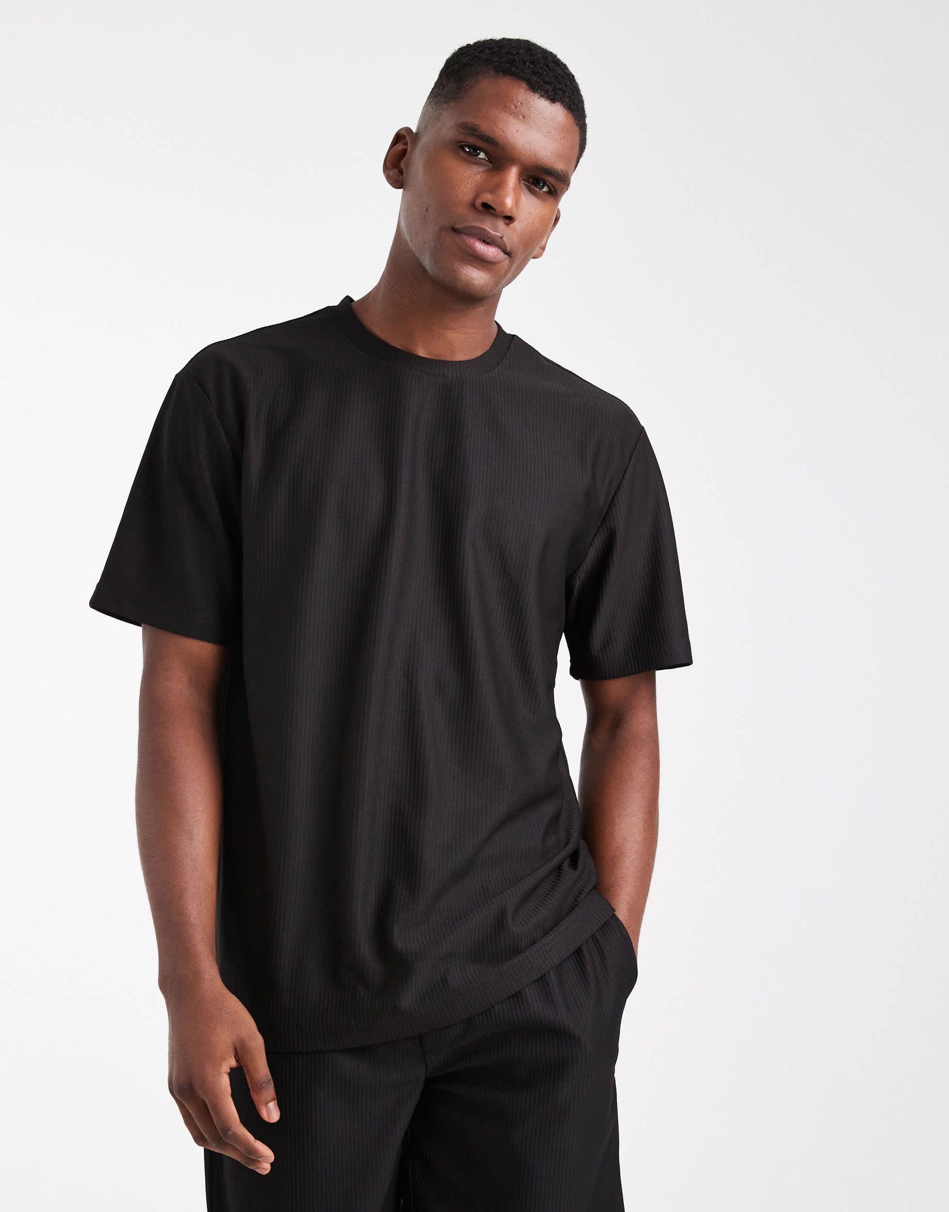 ONLY & SONS plisse oversized t-shirt co-ord in black