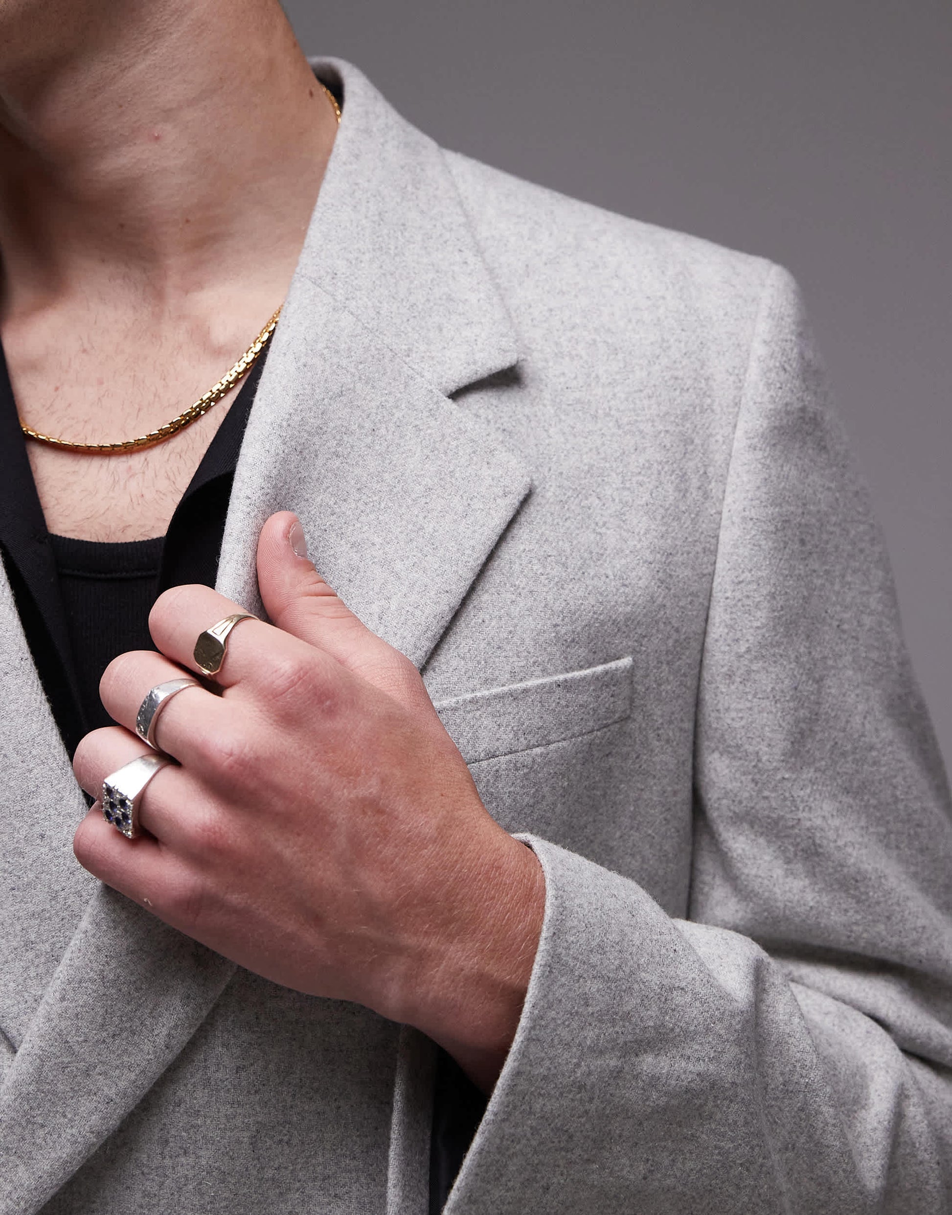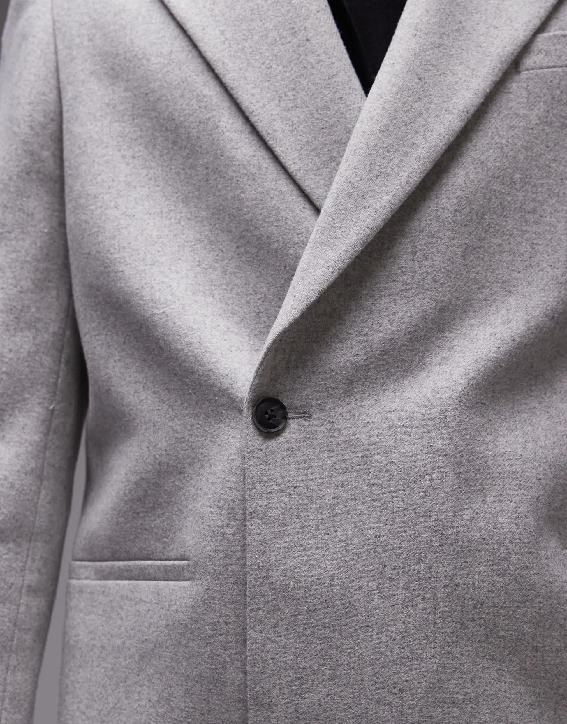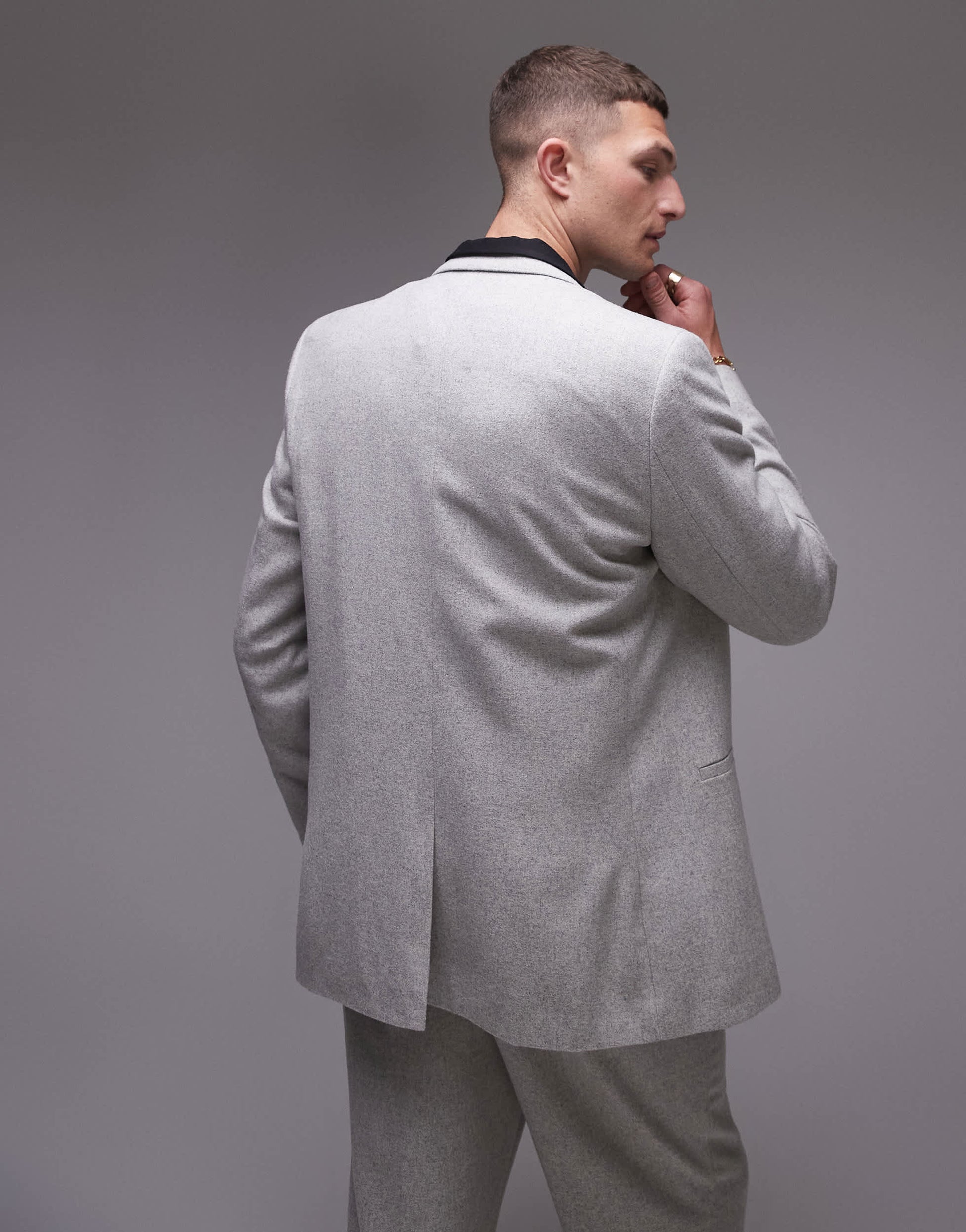 Topman premium wool mix oversized double breasted suit jacket in light grey