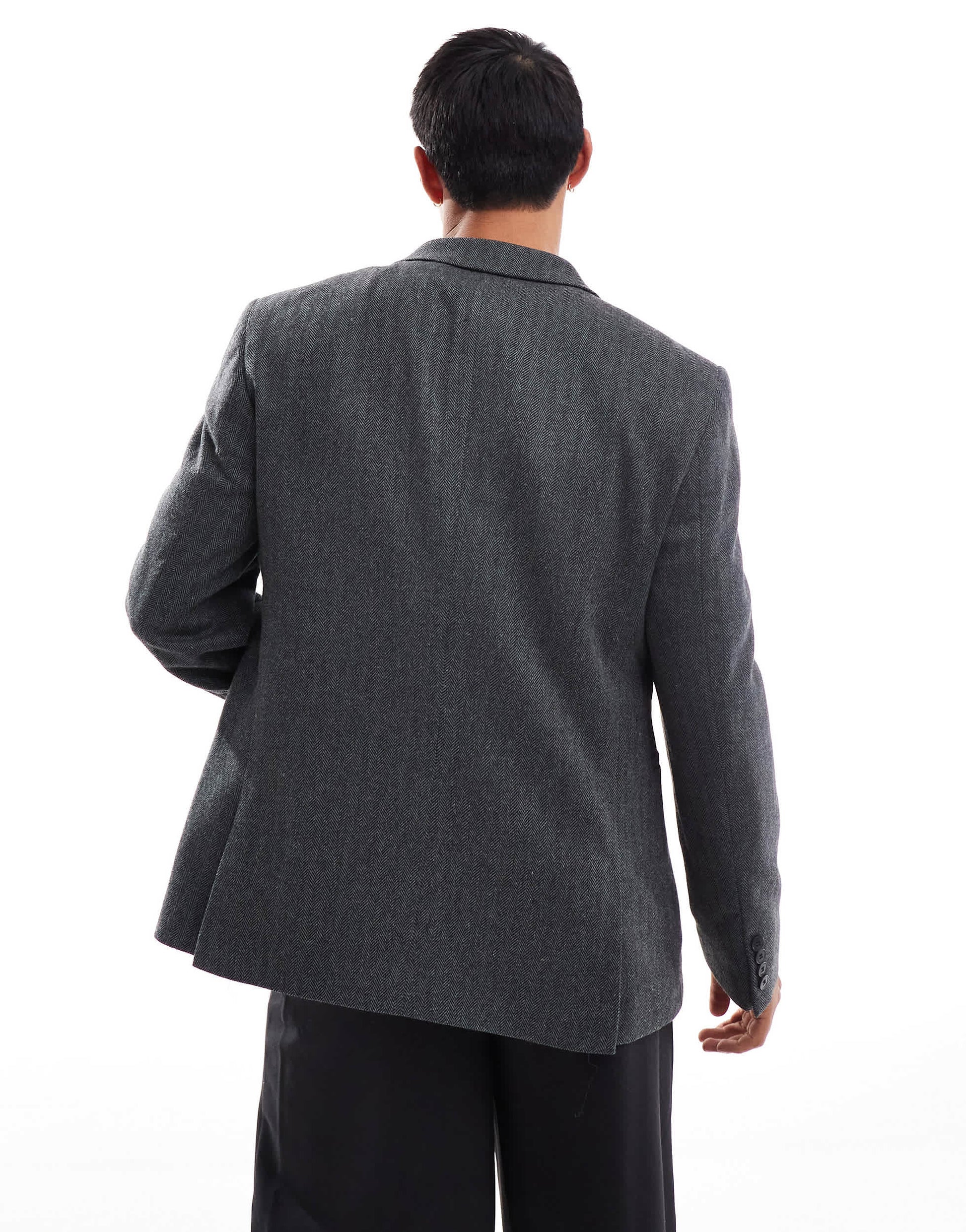 ASOS DESIGN slim fit wool mix suit jacket in herringbone in charcoal
