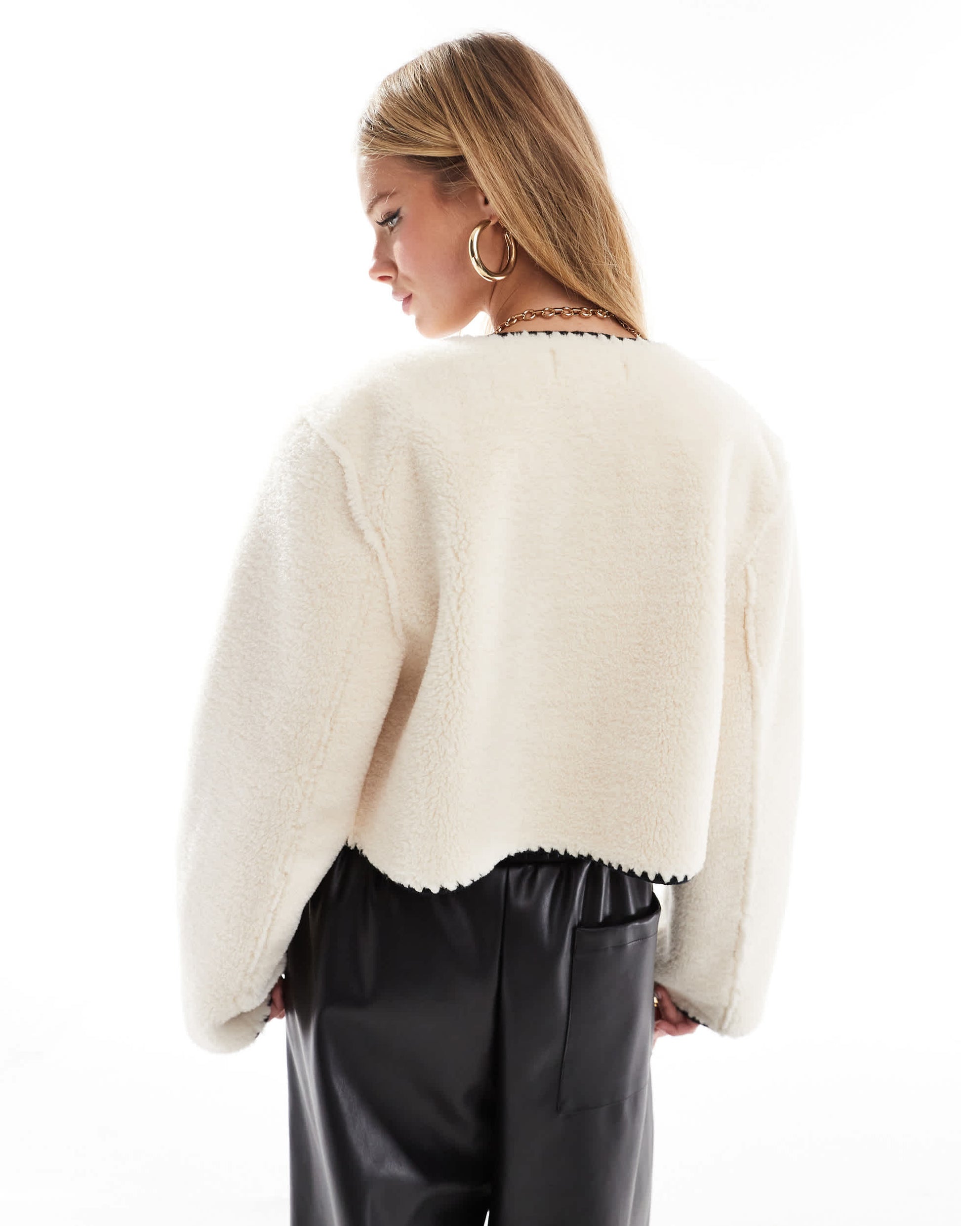 Borg: sheepskin-like fabric with a bumpy texture Back: 100% Polyester, Main: 100% Polyester, Face: 100% Polyester.