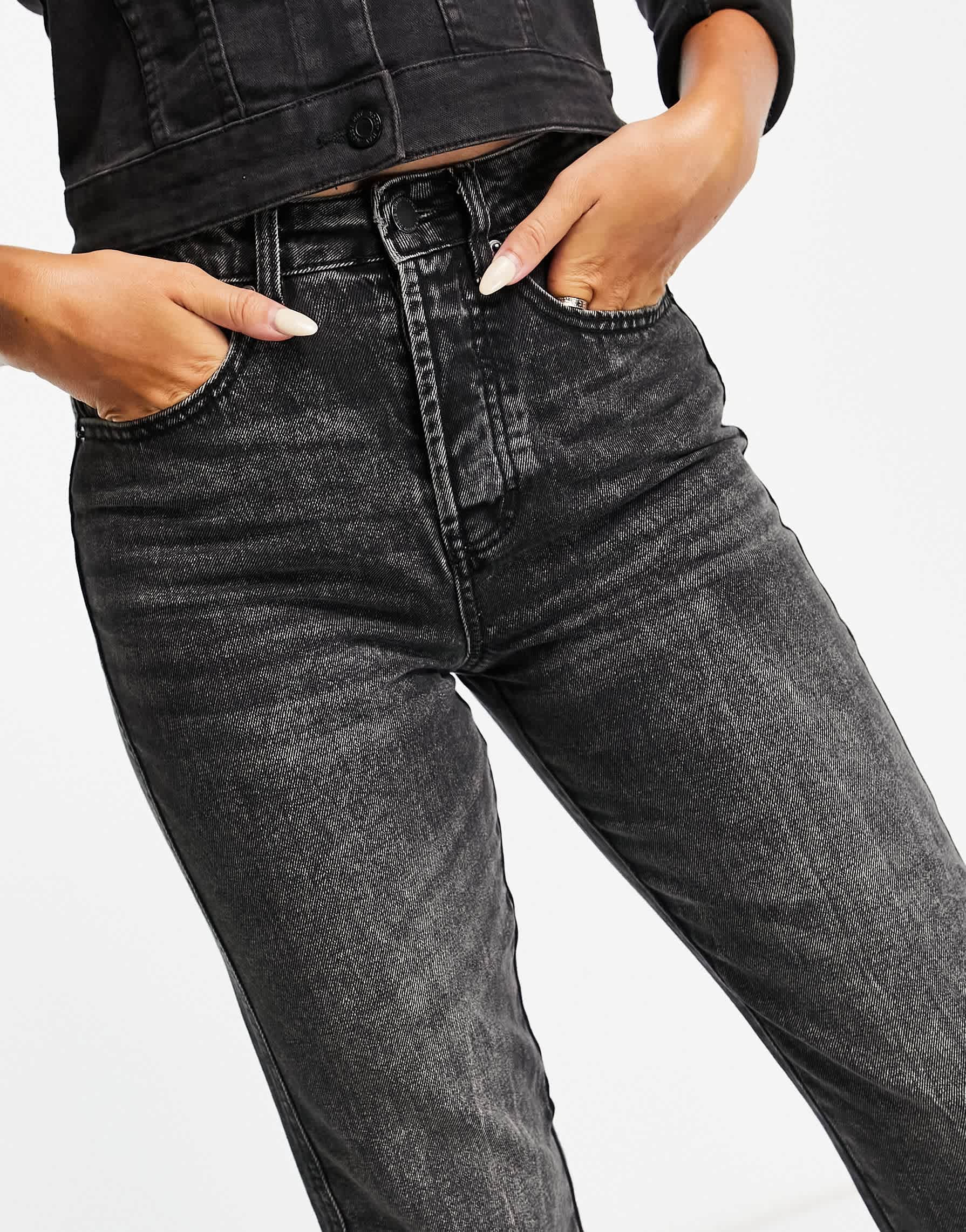 Stradivarius cotton mom fit vintage jean in grey wash - GREY