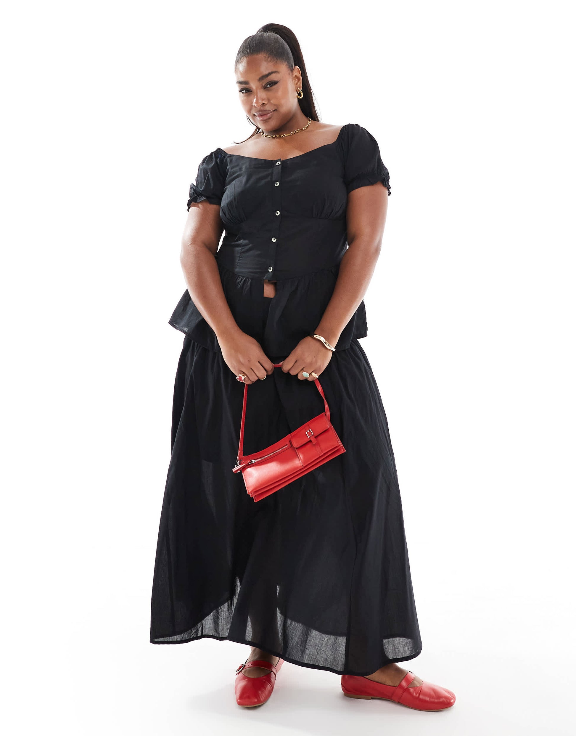 ASOS DESIGN Curve puff sleeve button down milkmaid top in black