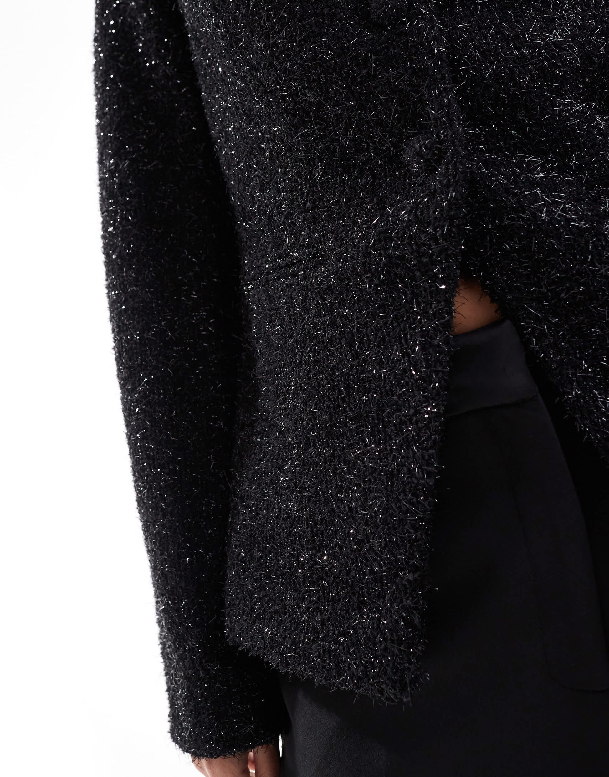 Boucle: wool-like yarn made up of looped circles and curls Main: 100% Polyester.