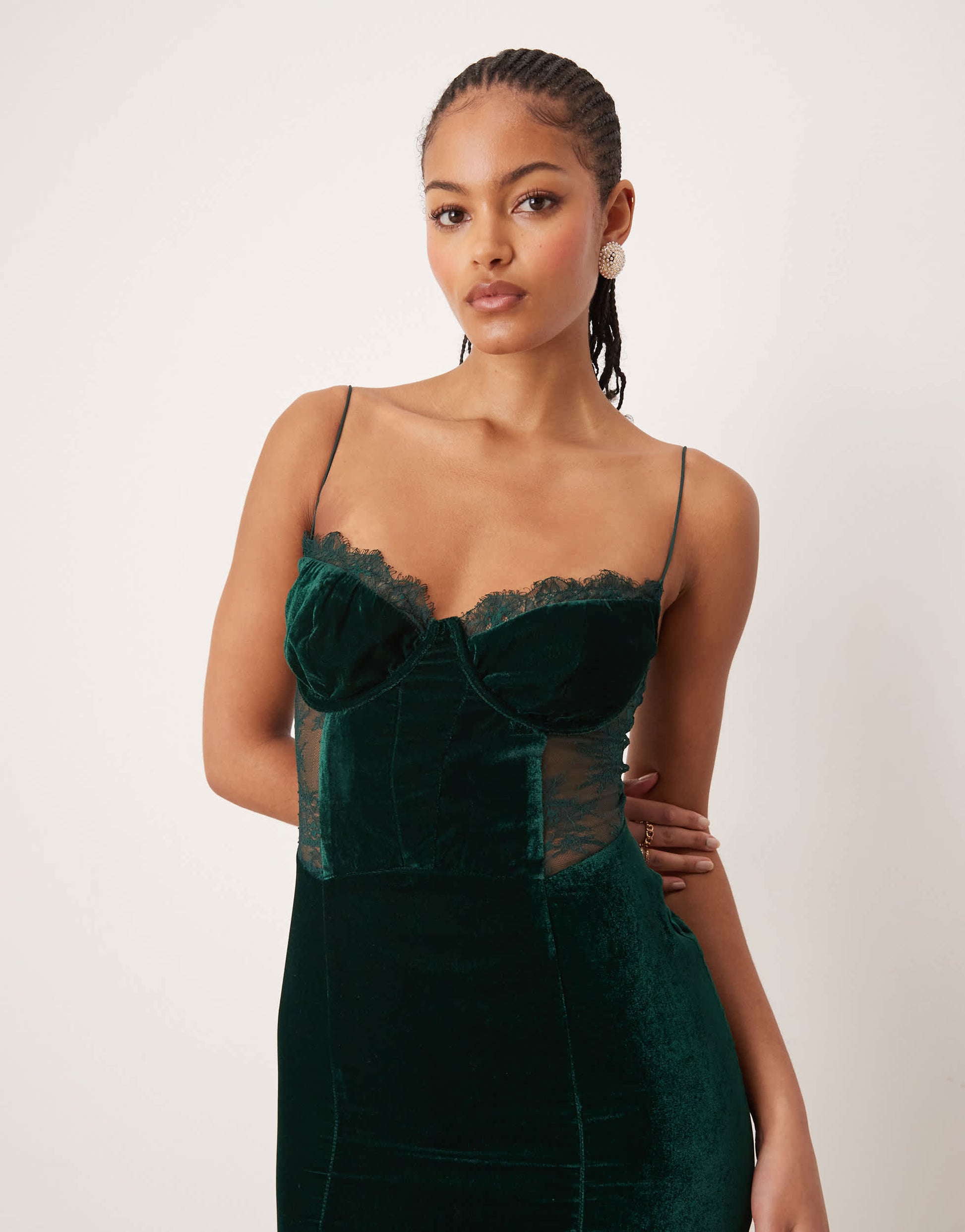 ASOS DESIGN Tall velvet corset midi dress with lace insert in deep teal