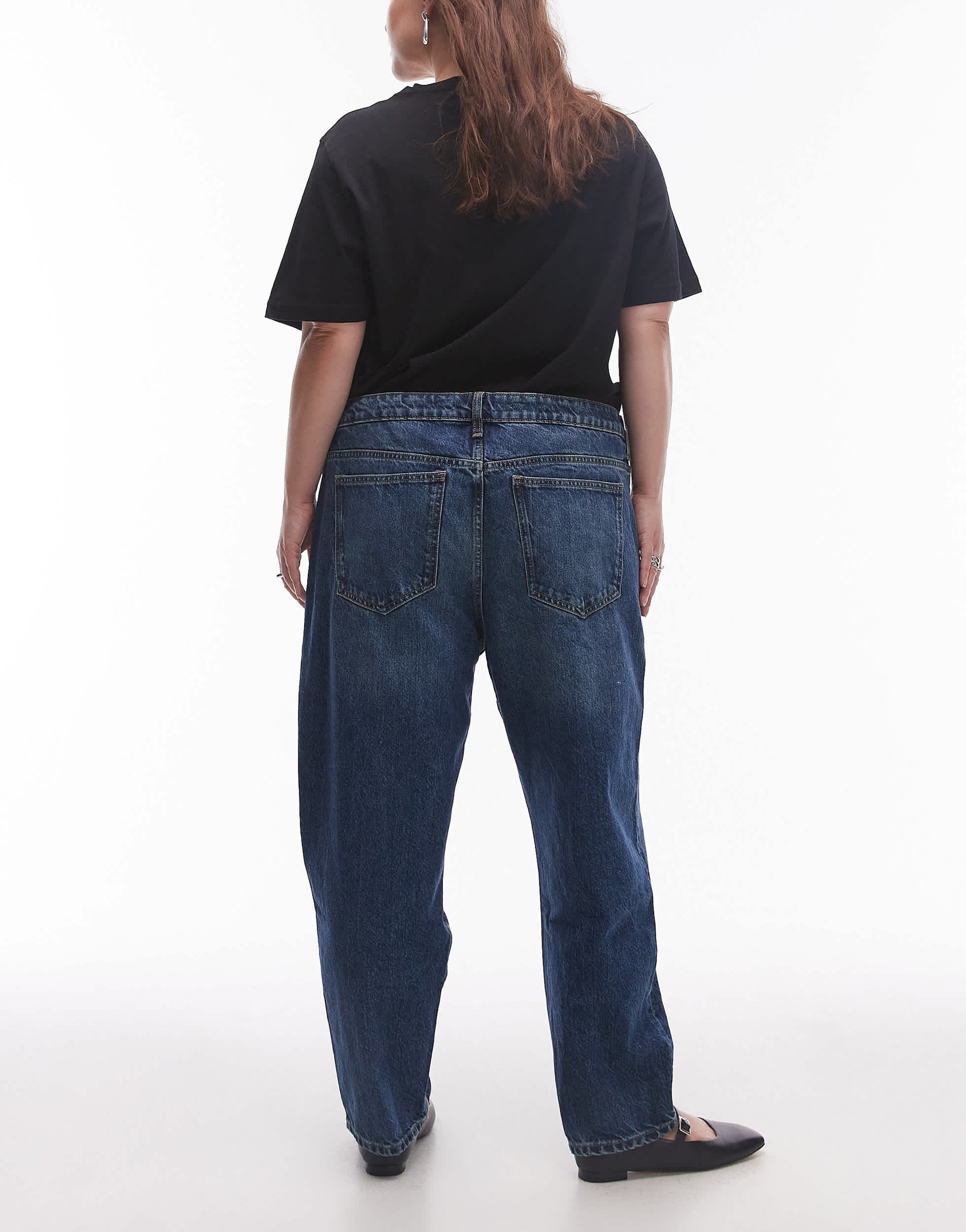 Non-stretch denim: mid-blue wash Main: 100% Cotton.