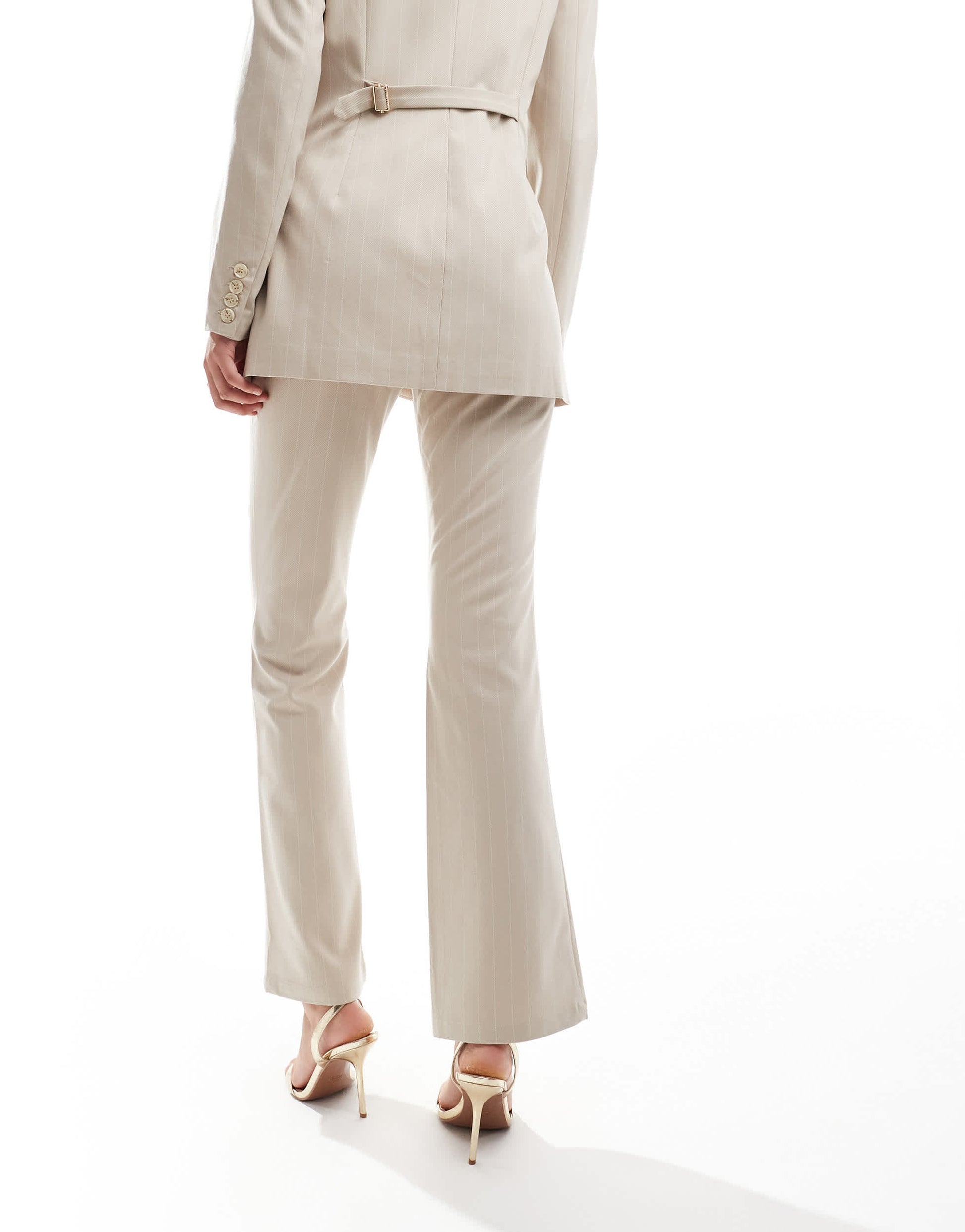 Pretty Lavish straight leg trouser co-ord in beige pinstripe
