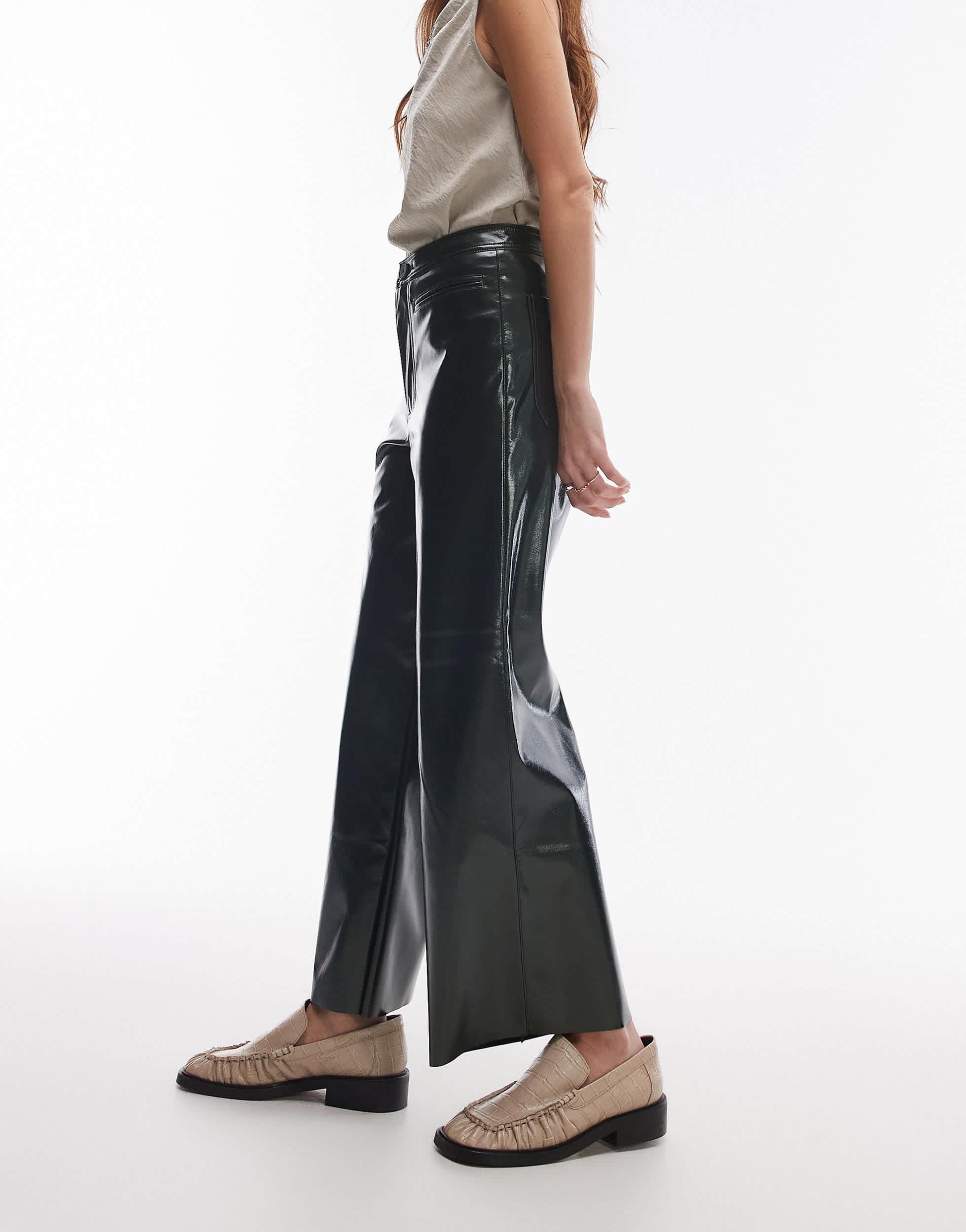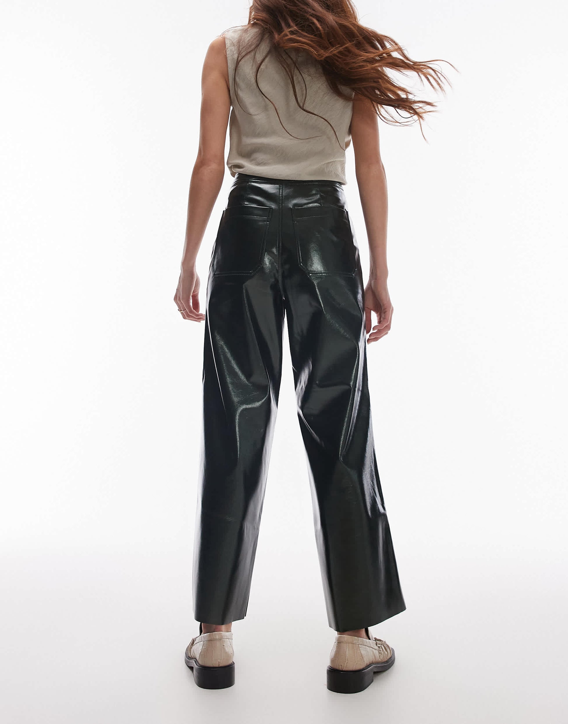Faux leather: patent finish Backing: 100% Polyester, Main: 100% Polyurethane coating.