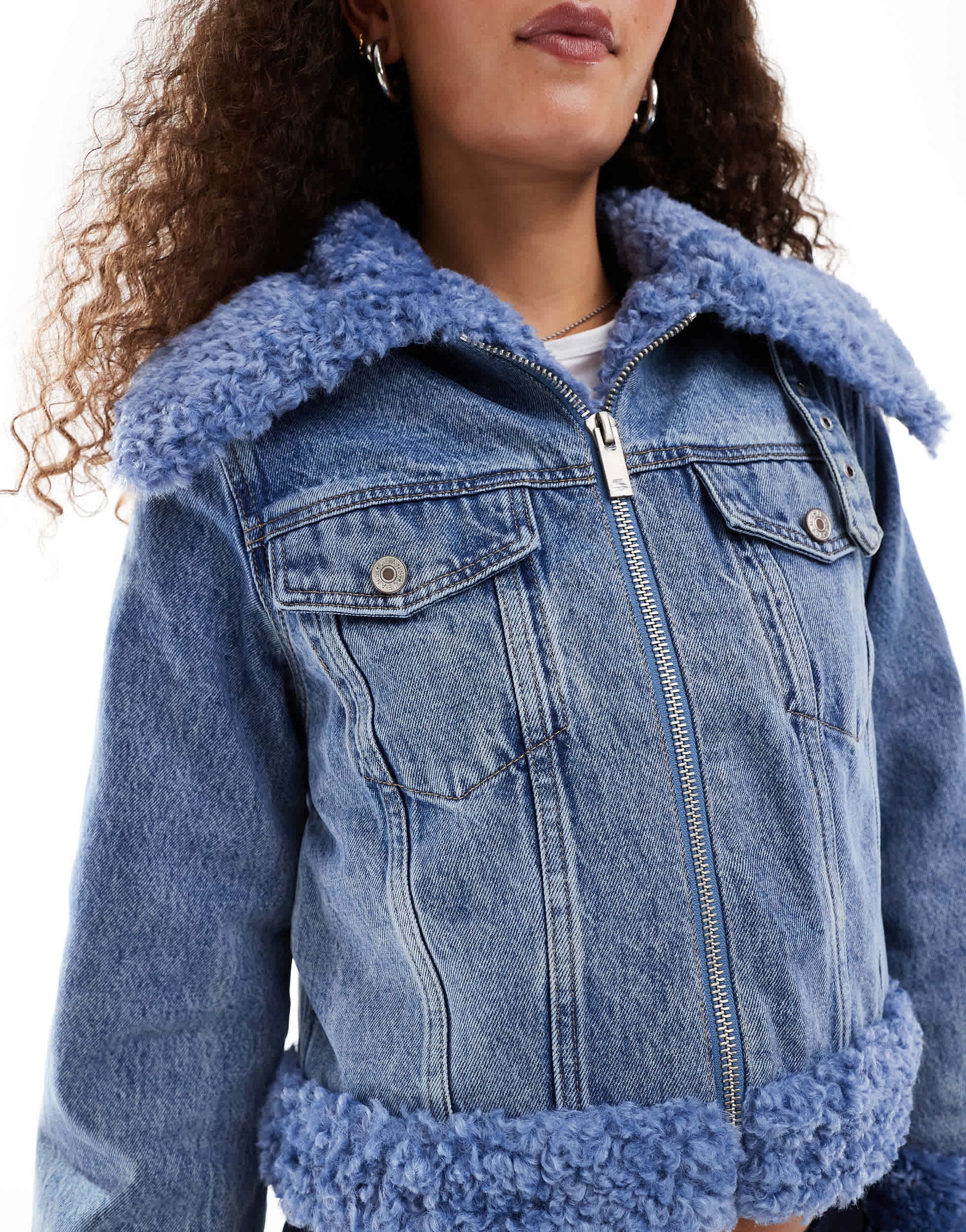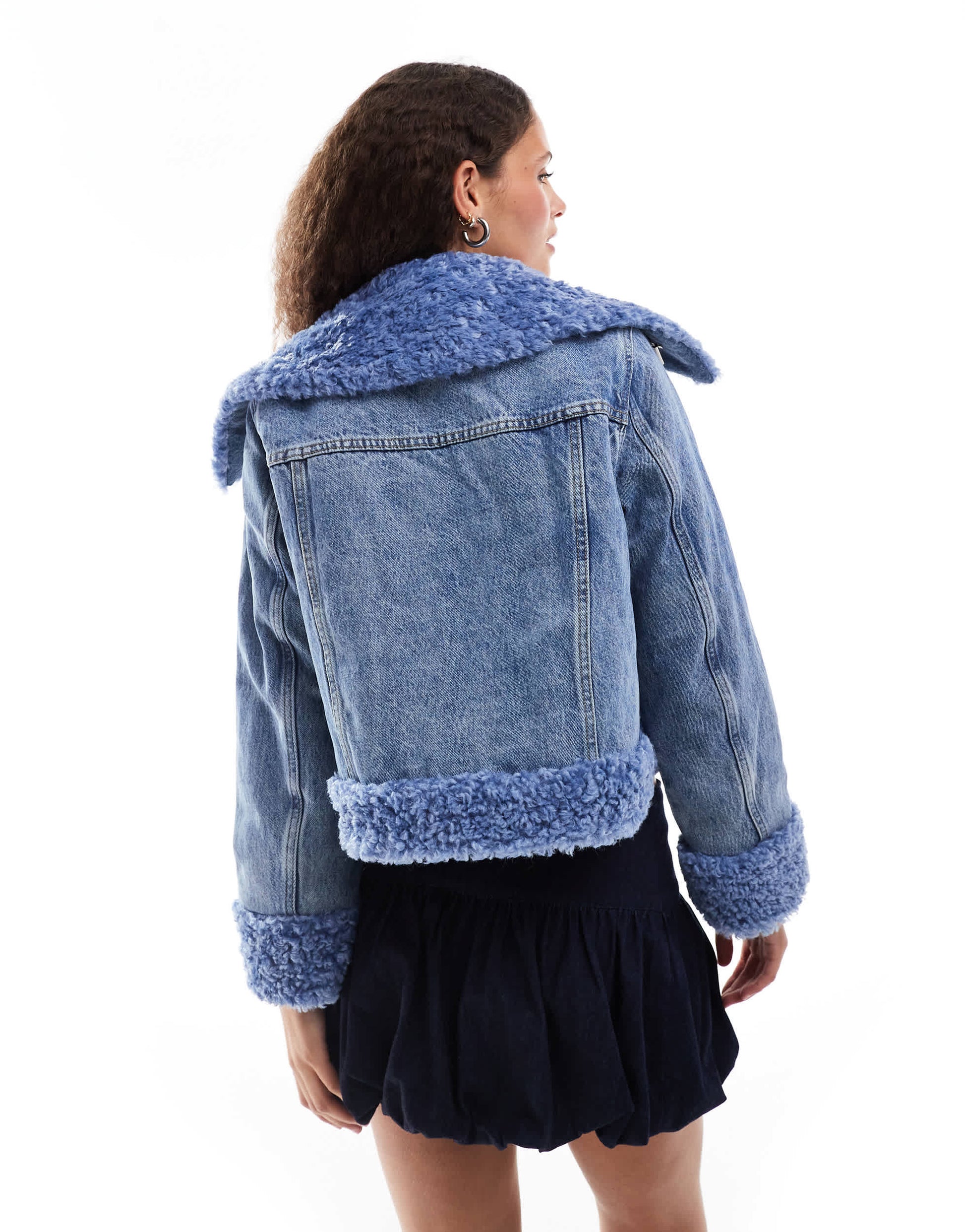 Non-stretch denim: blue wash Body: 100% Polyester, Shell: 100% Cotton.