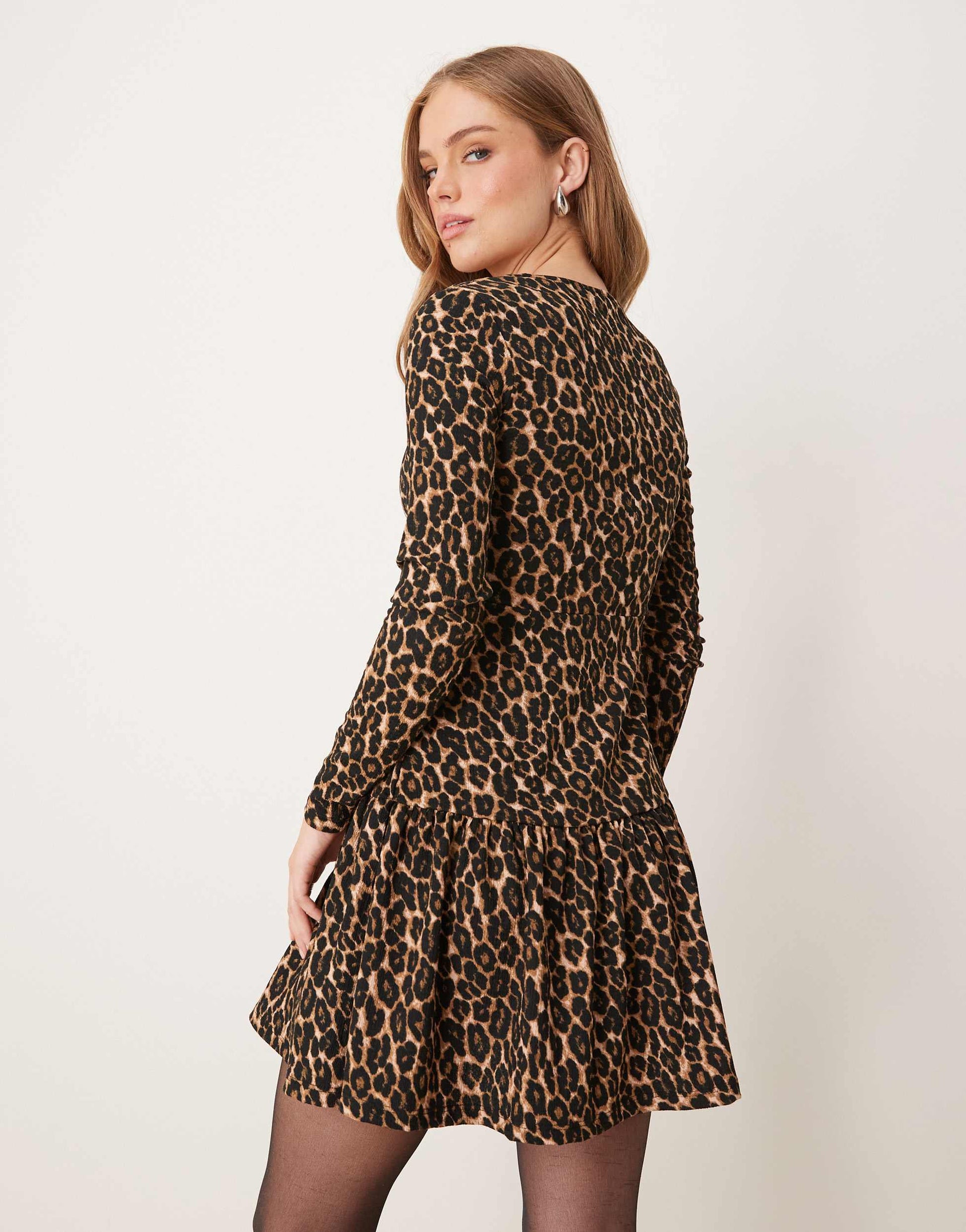 New Look crinkle mini dress in leopard print