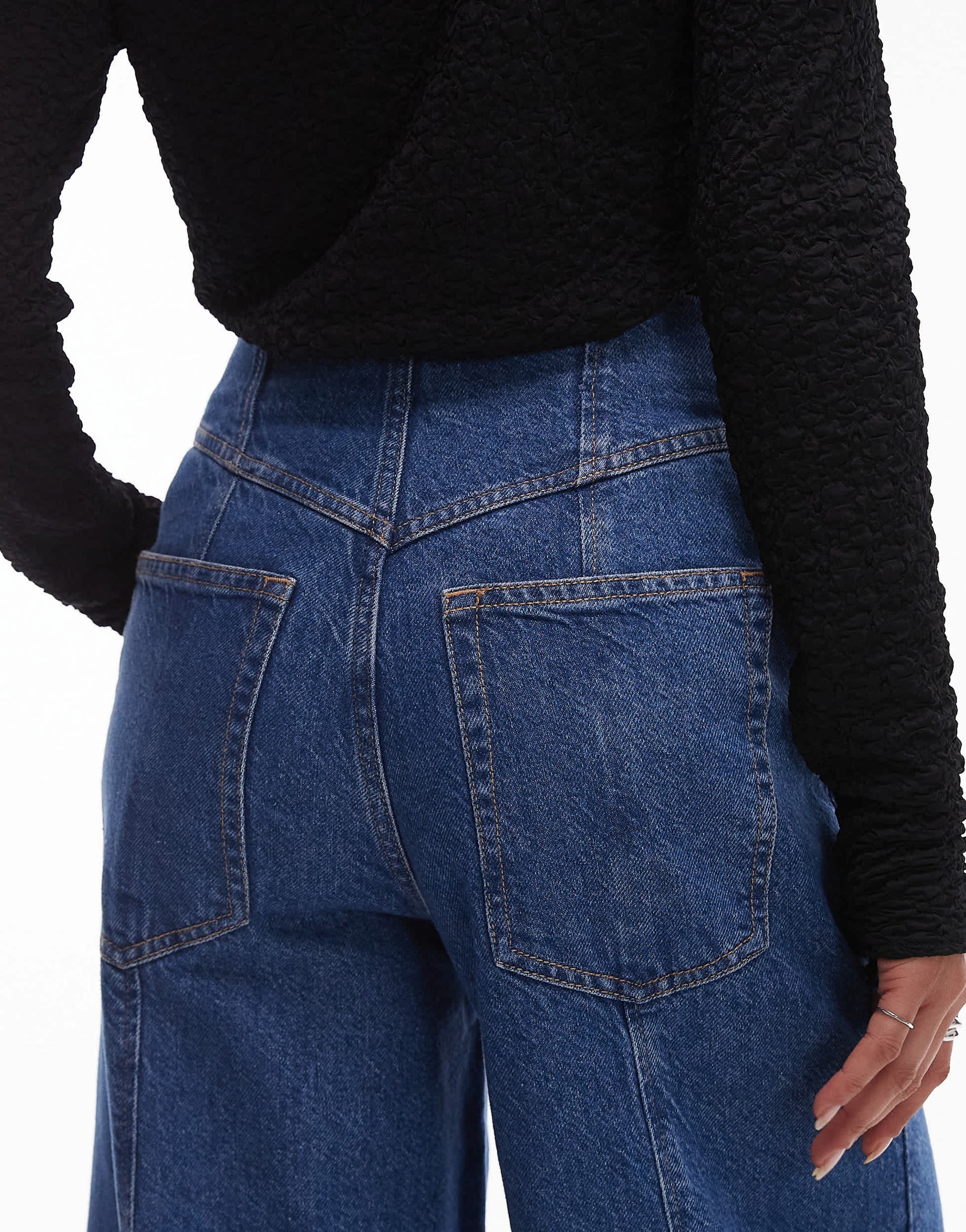Non-stretch denim: mid-blue wash Main: 55% Polyester, 45% Cotton.