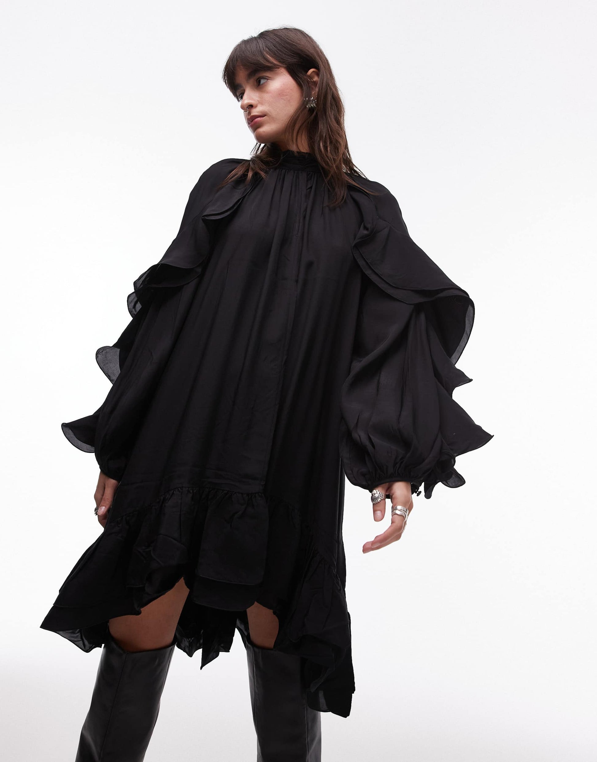 & Other Stories long sleeve floaty midi dress with ruffle detail in black