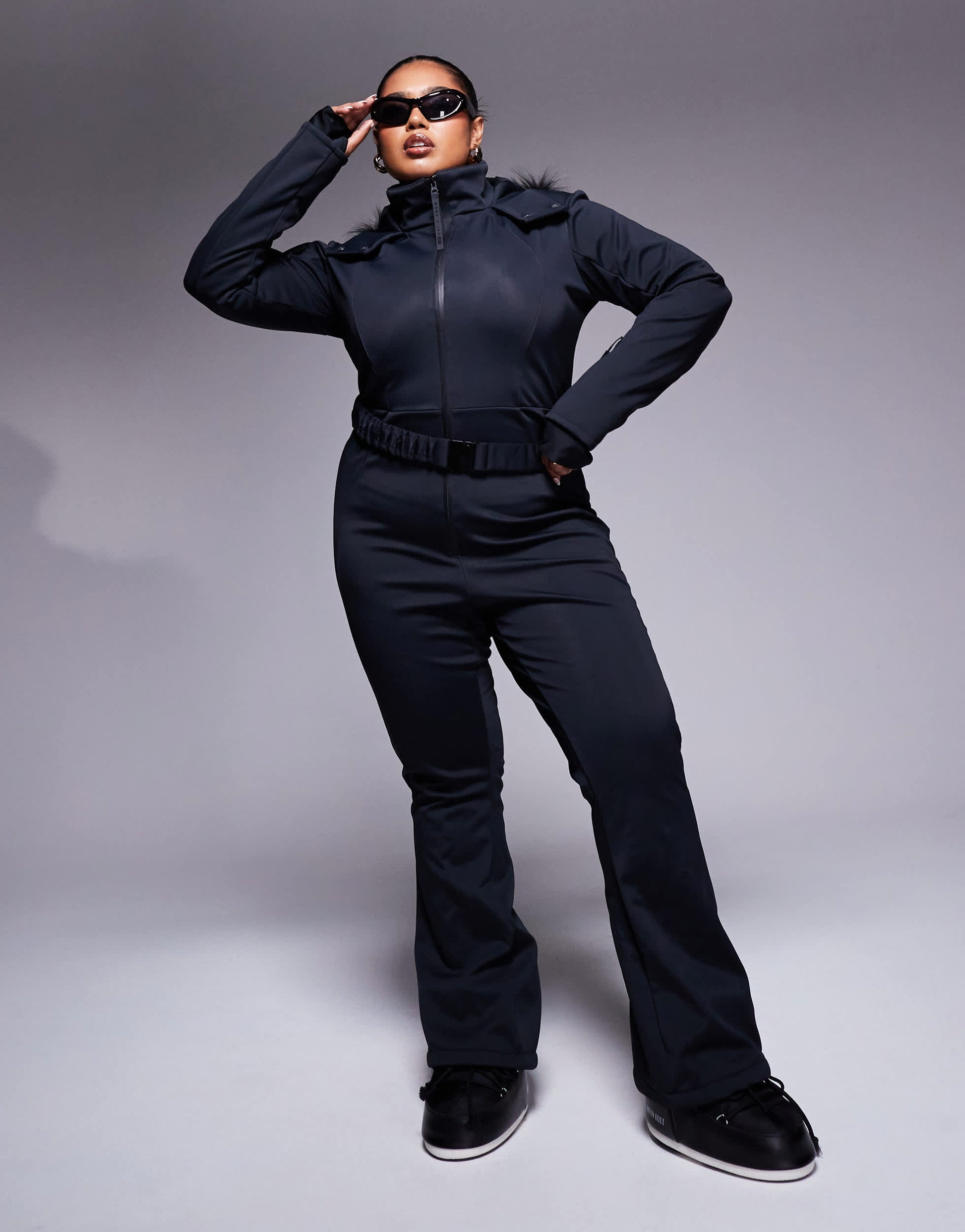 Nylon-rich fabric: smooth, crisp and wrinkle-resistant Back: 94% Polyester, 6% Elastane, Lining: 100% Polyester, Face: 82% Nylon, 18% Elastane, Inner: 100% Thermoplastic Polyurethane, Faux Fur: 60% Modacrylic, 40% Acrylic.