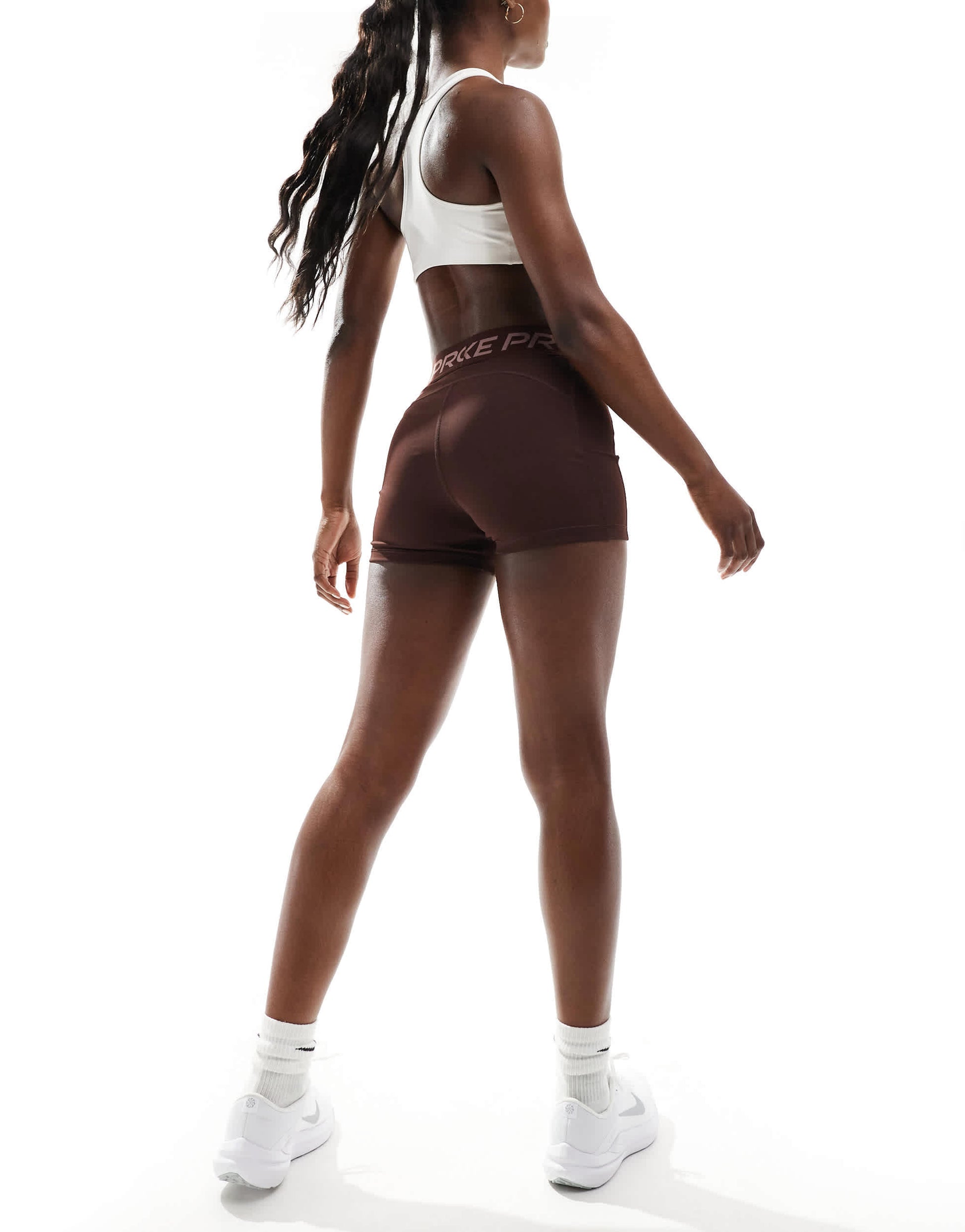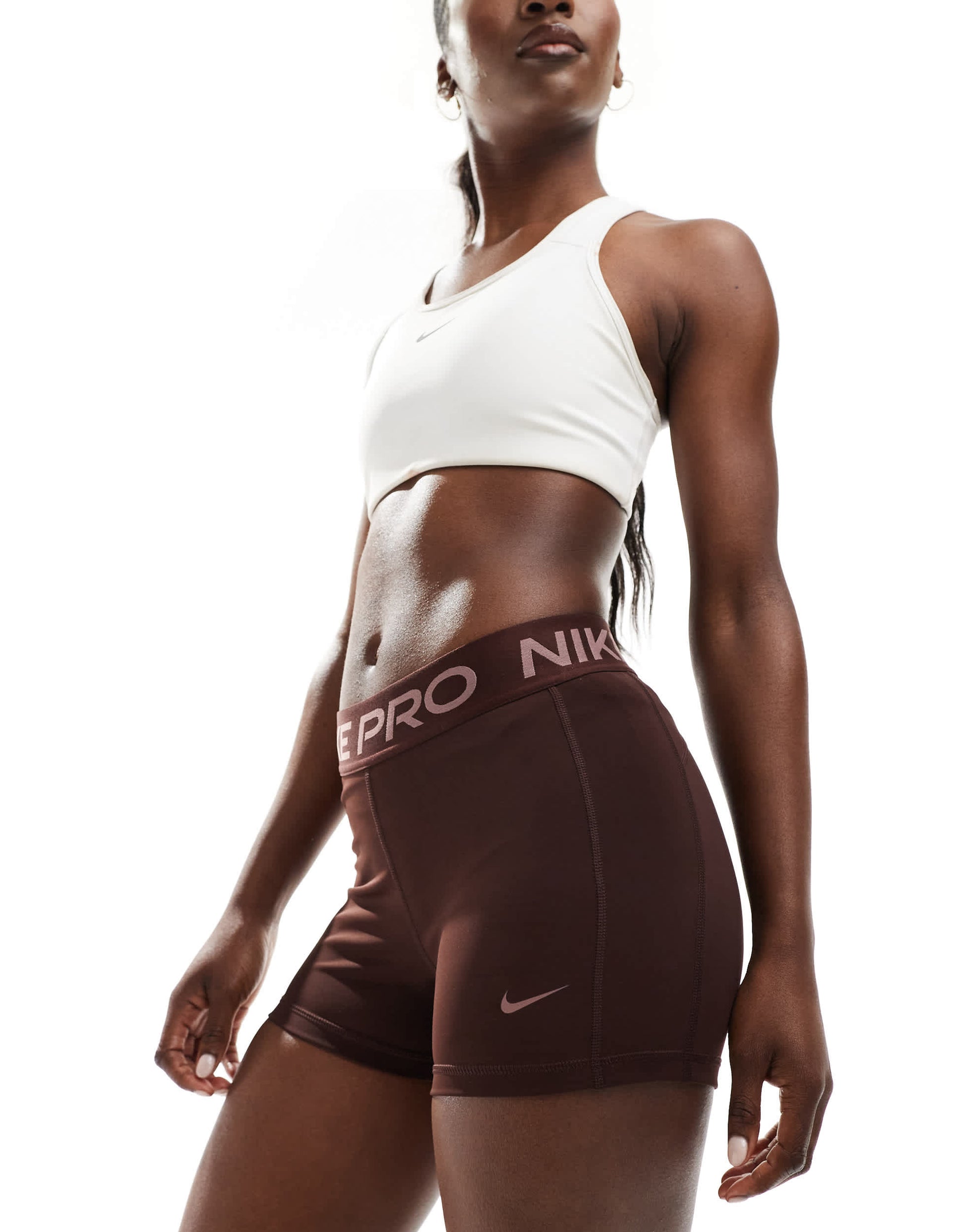 Nike Pro Training 365 3 inch leakproof leggings shorts in dark brown