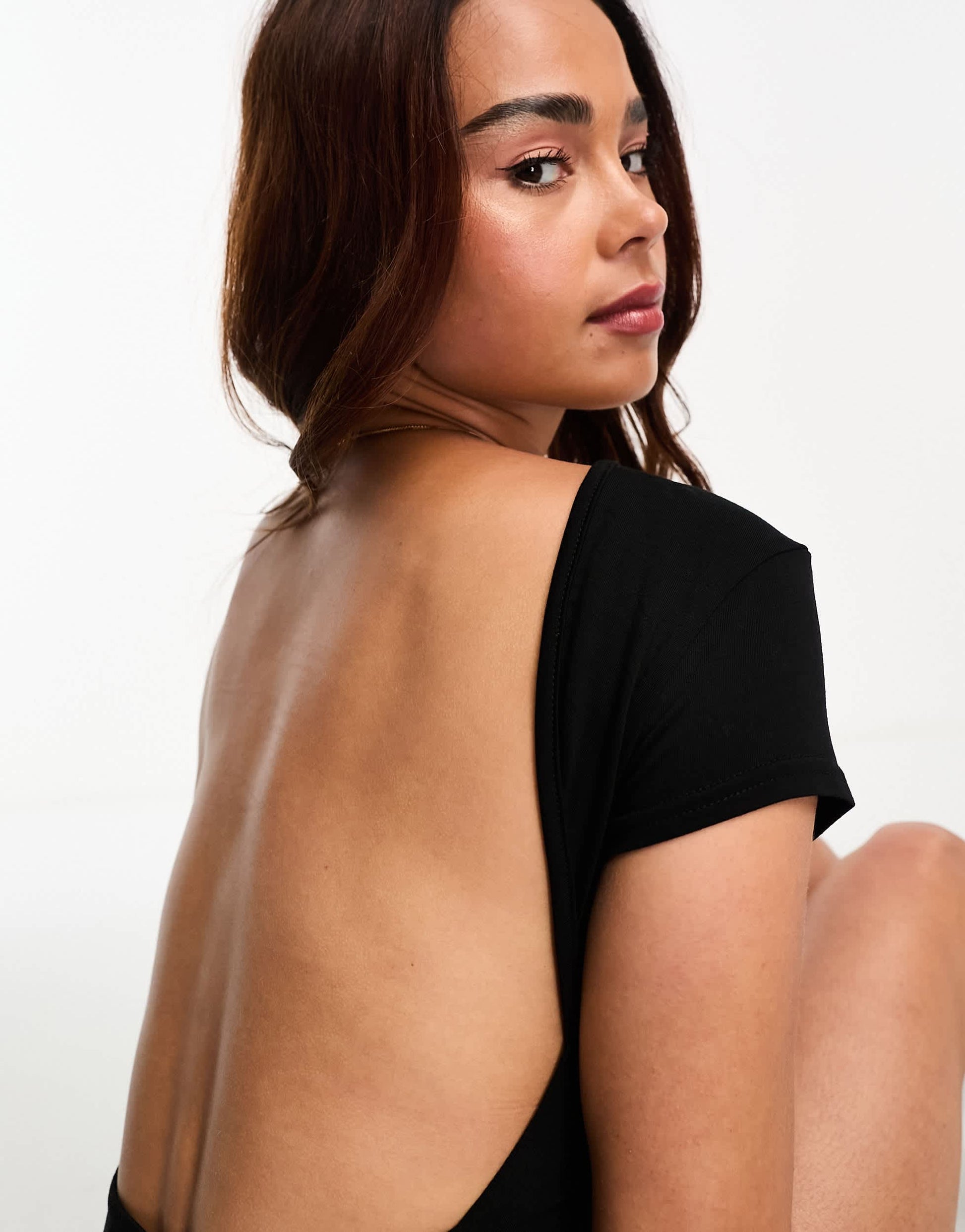 Miss Selfridge cap sleeve backless top in black