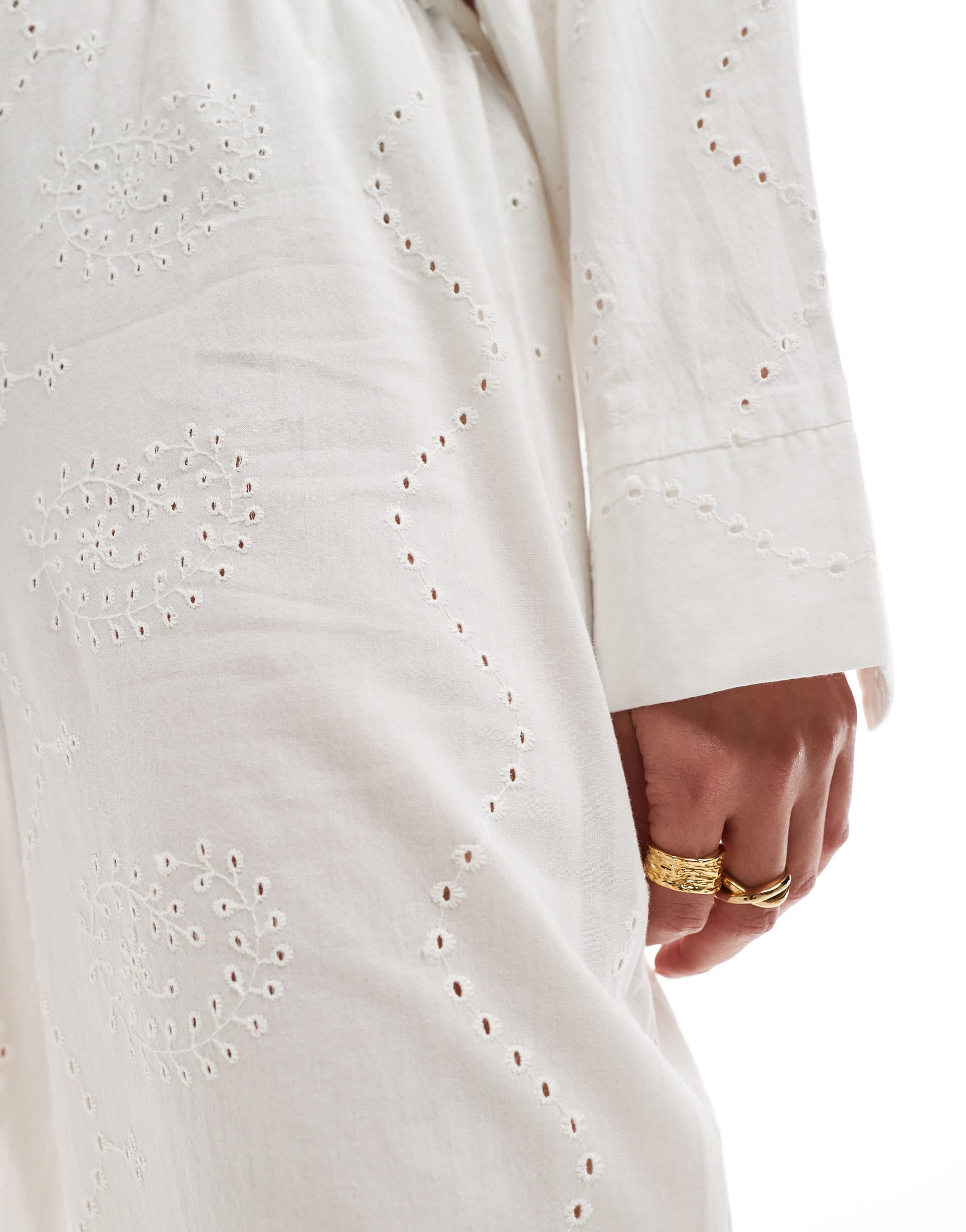 Broderie anglaise: lightweight fabric with an embroidered, cut-out pattern Main: 100% Cotton.