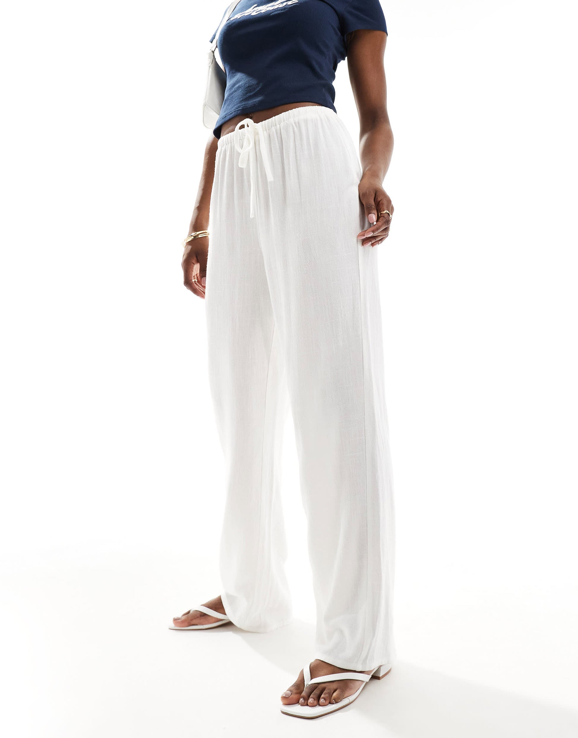 4th & Reckless linen mix tie waist wide leg trousers in white