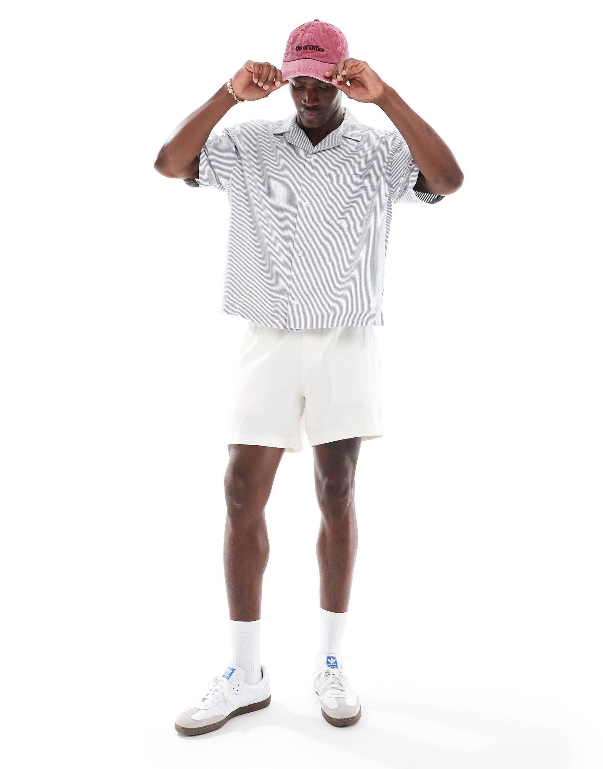 Abercrombie & Fitch short sleeve workwear railroad stripe twill shirt in grey