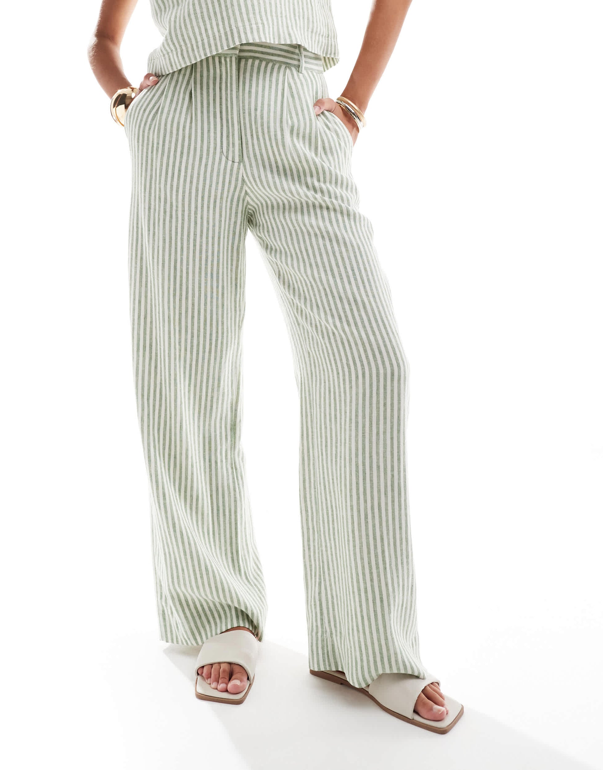 Abercrombie & Fitch Sloane co-ord linen blend wide leg trouser in green stripe