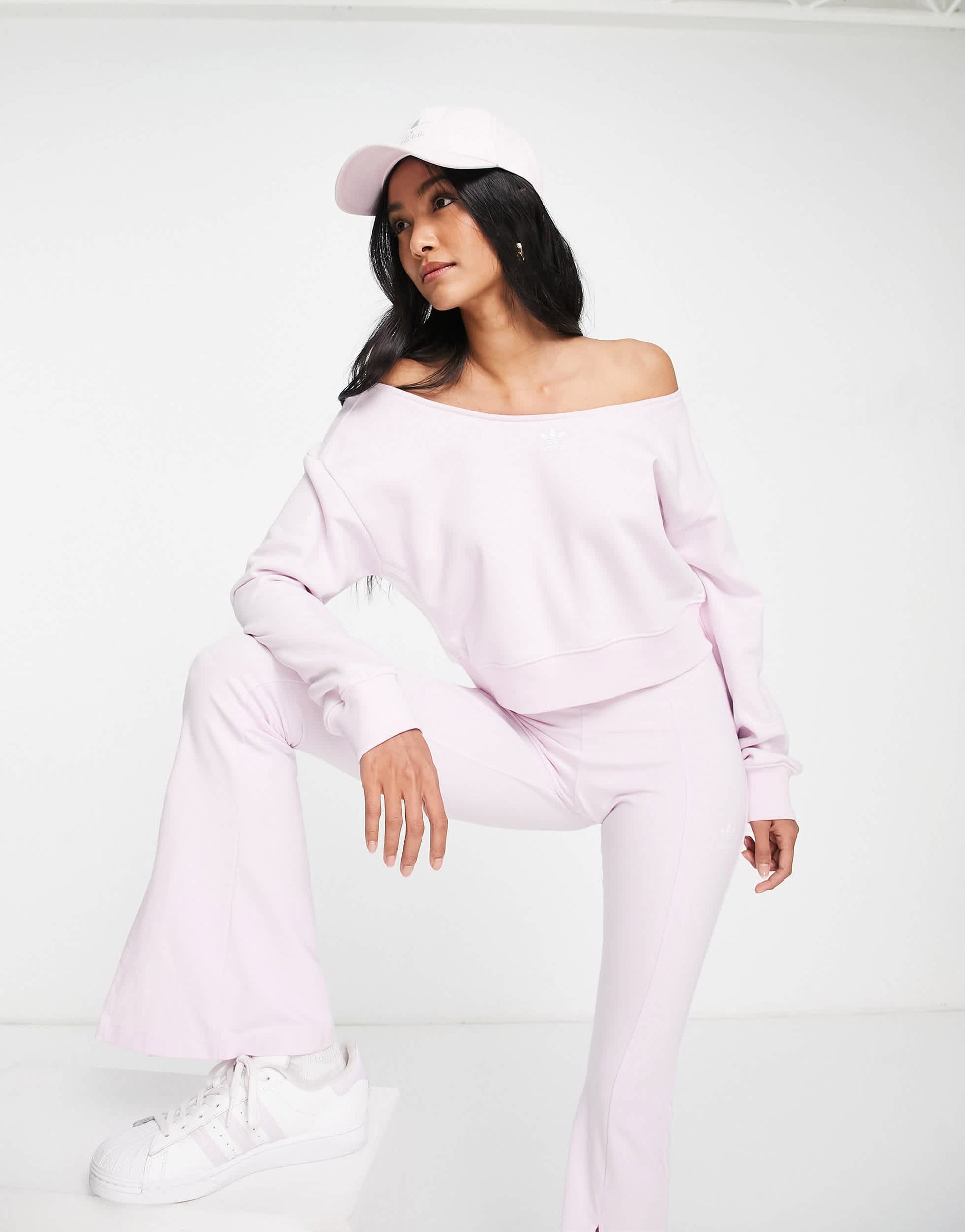 adidas Originals '80's Aerobic' off shoulder sweatshirt in pink