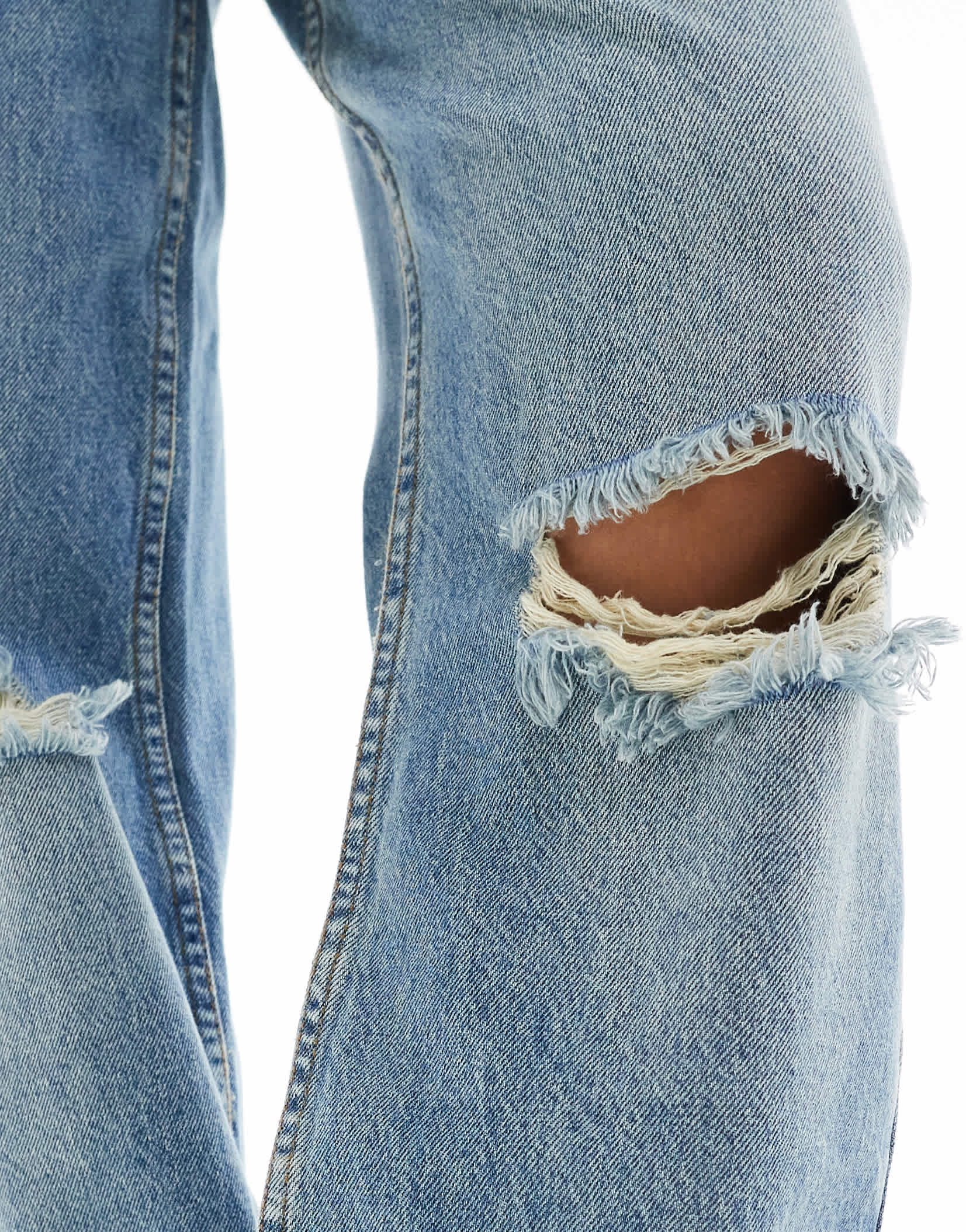 Mid-weight, non-stretch denim: mid-blue wash Main: 100% Cotton.
