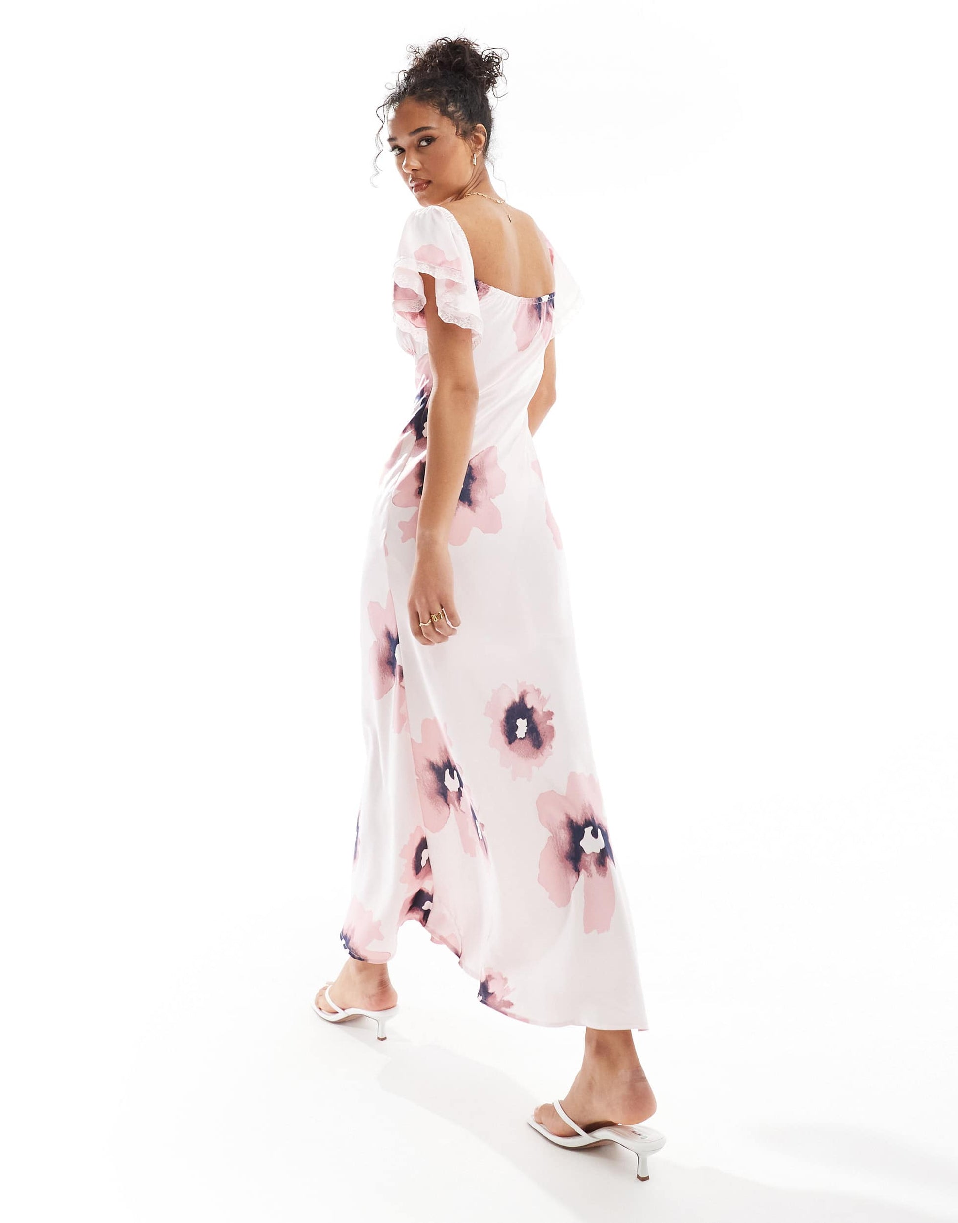 ASOS DESIGN bardot midi with lace inserts in pink floral