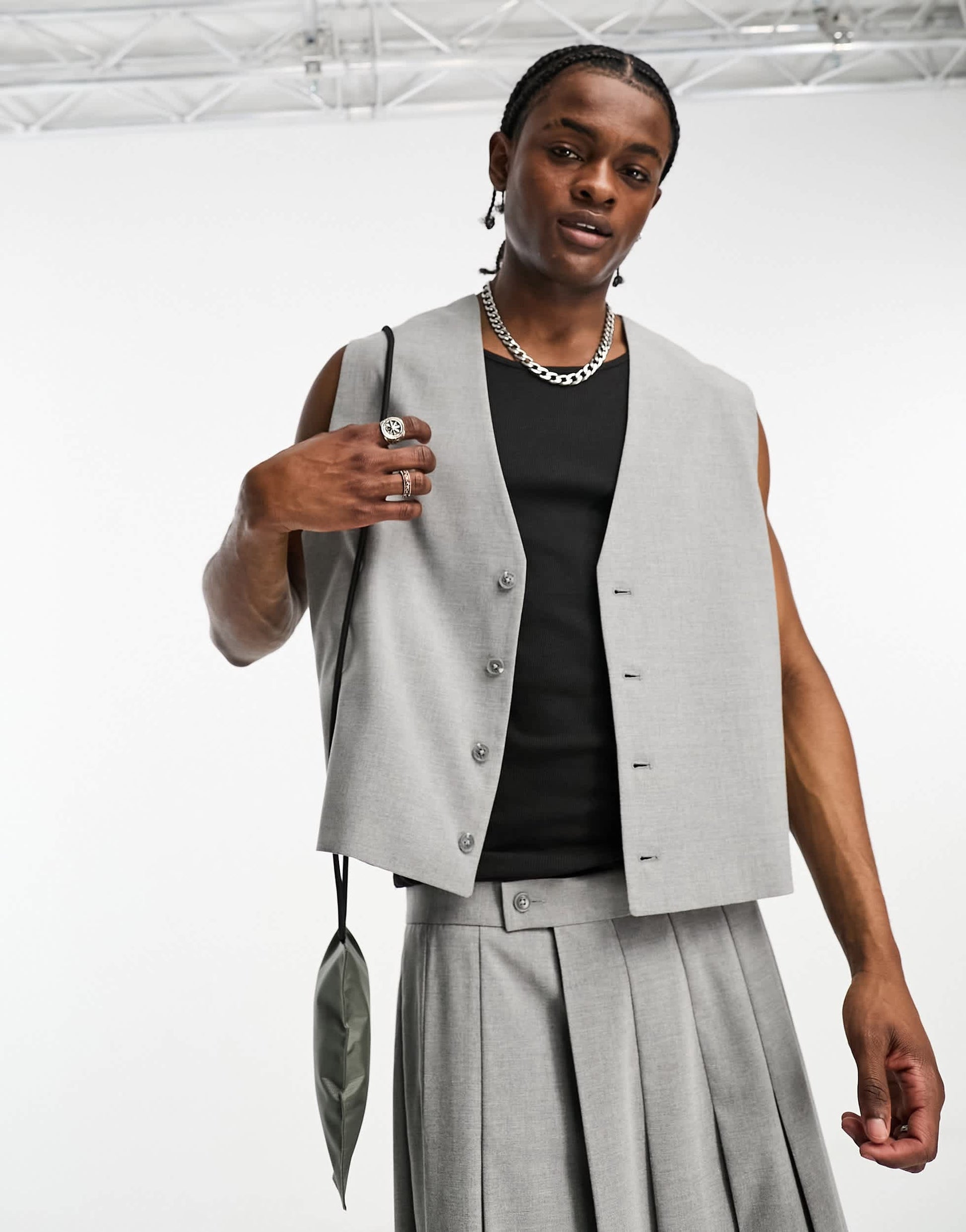 ASOS DESIGN boxy crop suit waistcoat in grey