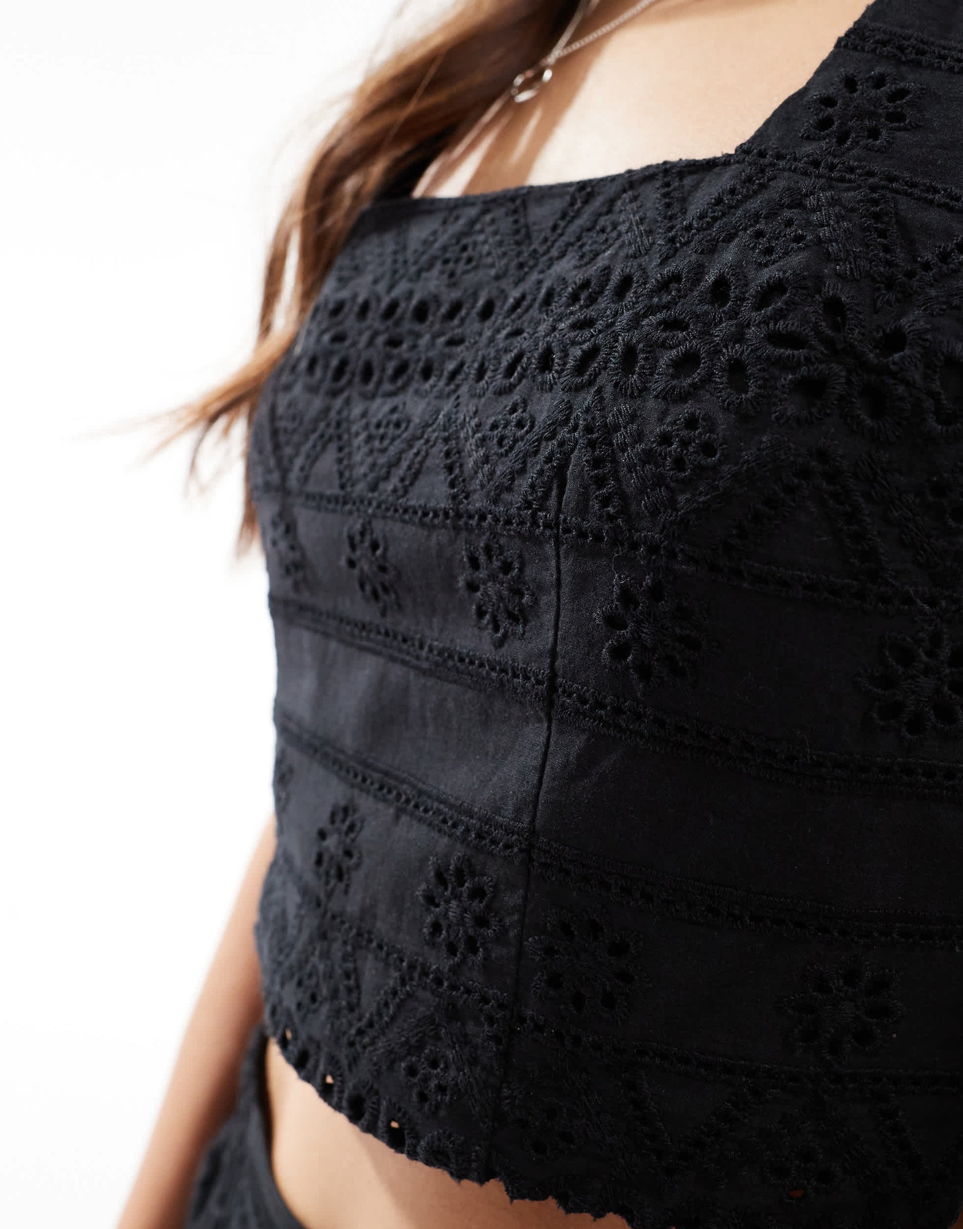 Broderie anglaise: lightweight fabric with an embroidered, cut-out pattern Lining: 80% Polyester, 20% Cotton, Shell: 100% Cotton.