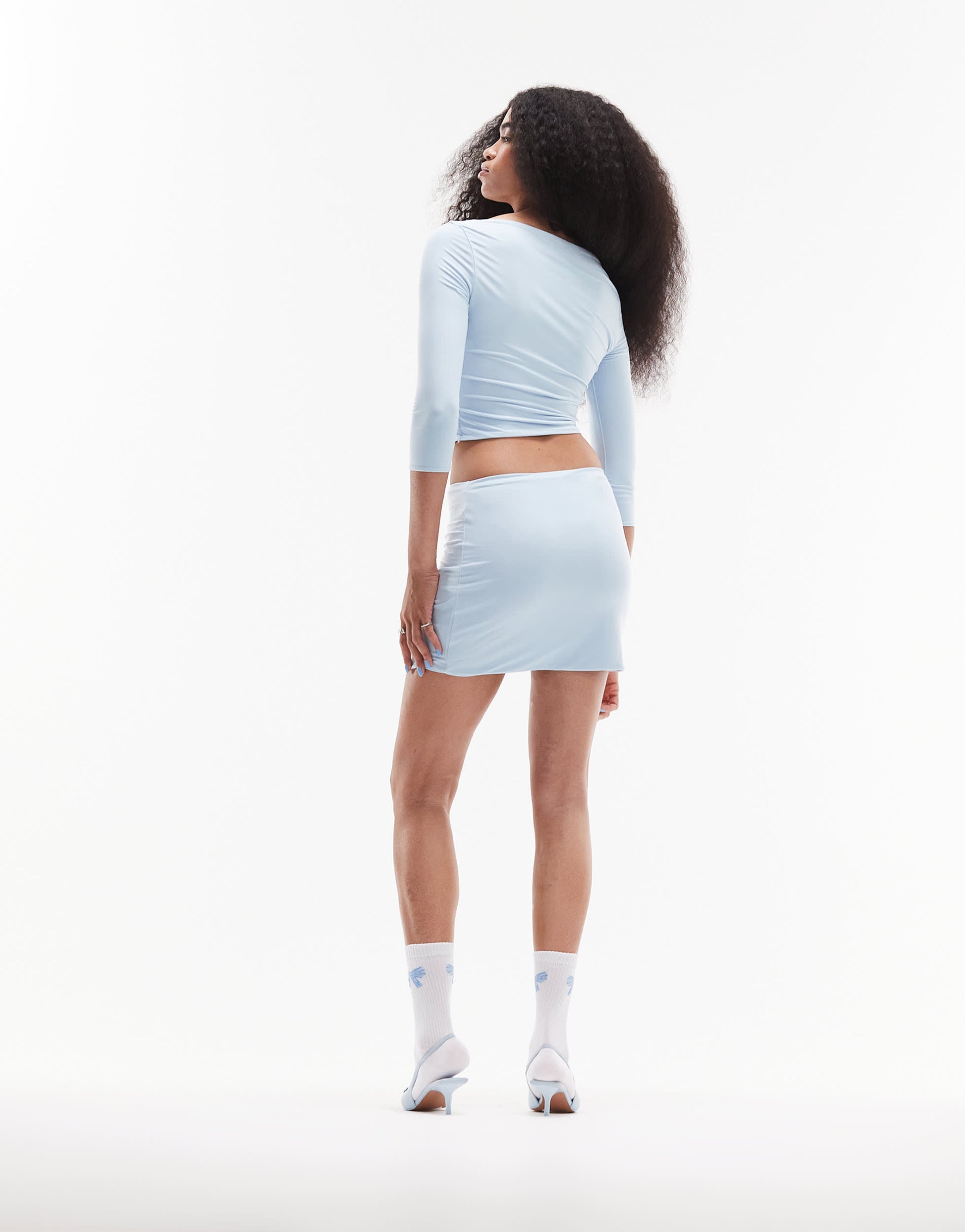 ASOS DESIGN co-ord slinky low rise micro mini skirt with split in blue
