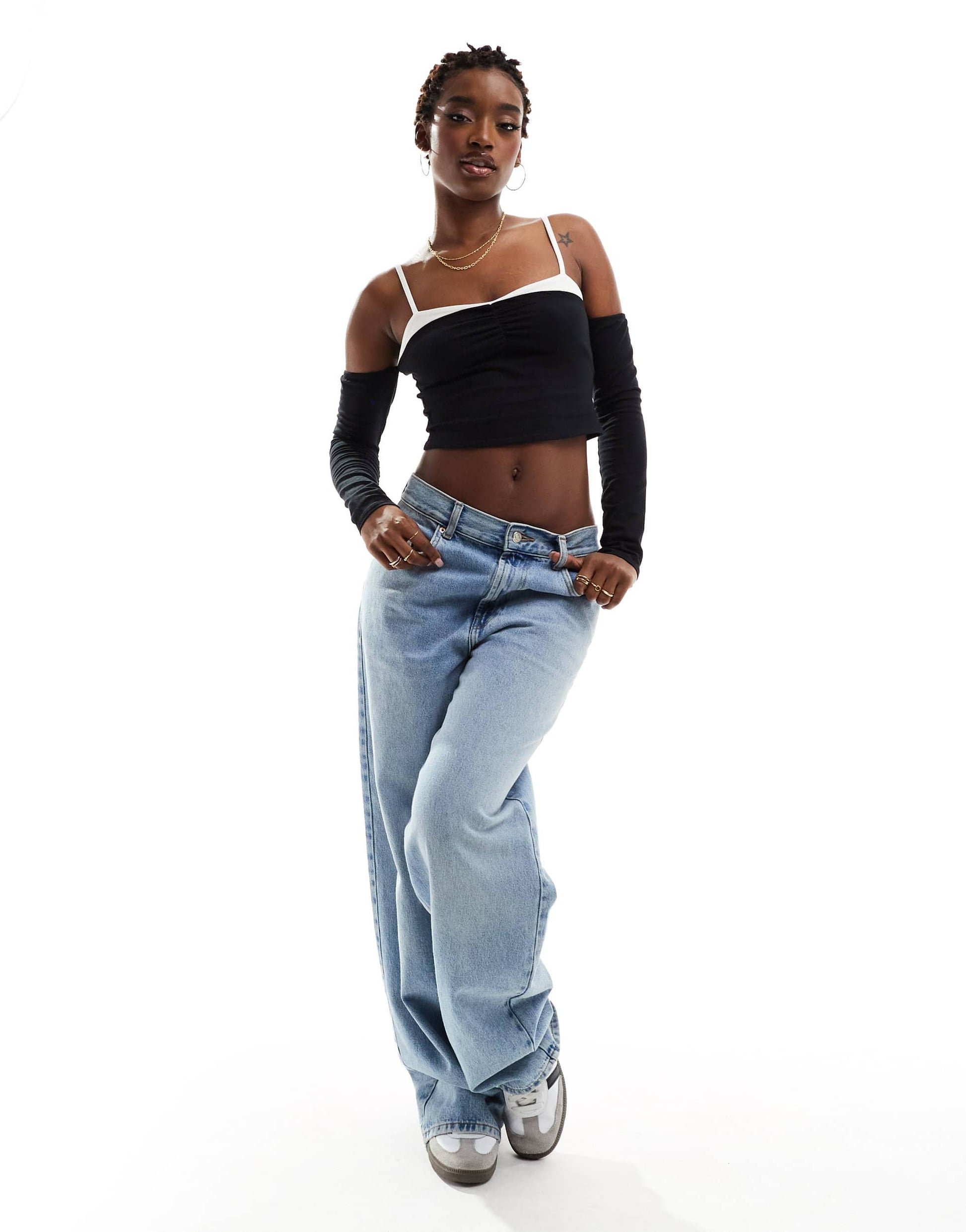 ASOS DESIGN contrast cami detail cold shoulder top in black and white