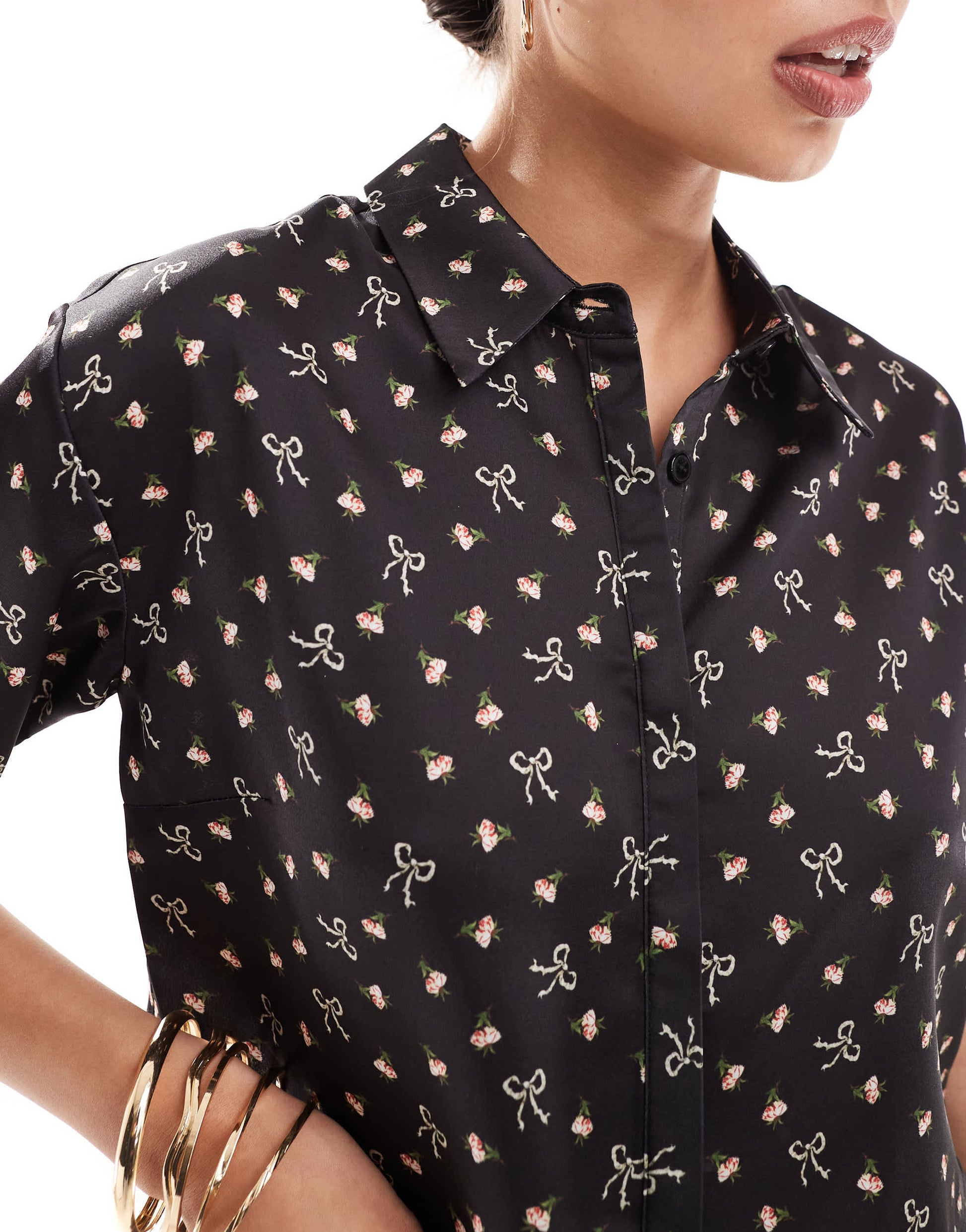 ASOS DESIGN crop satin shirt in bow print co-ord