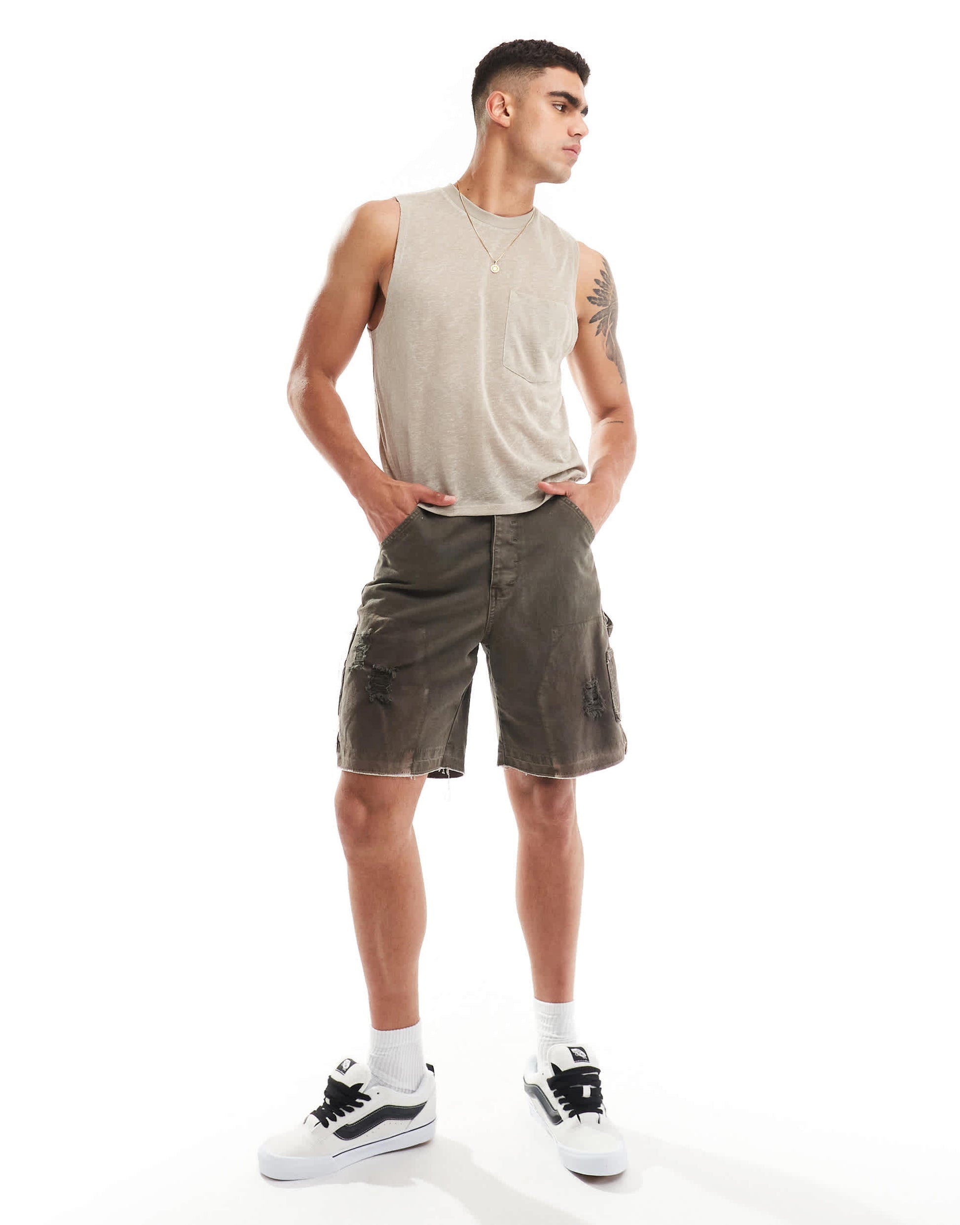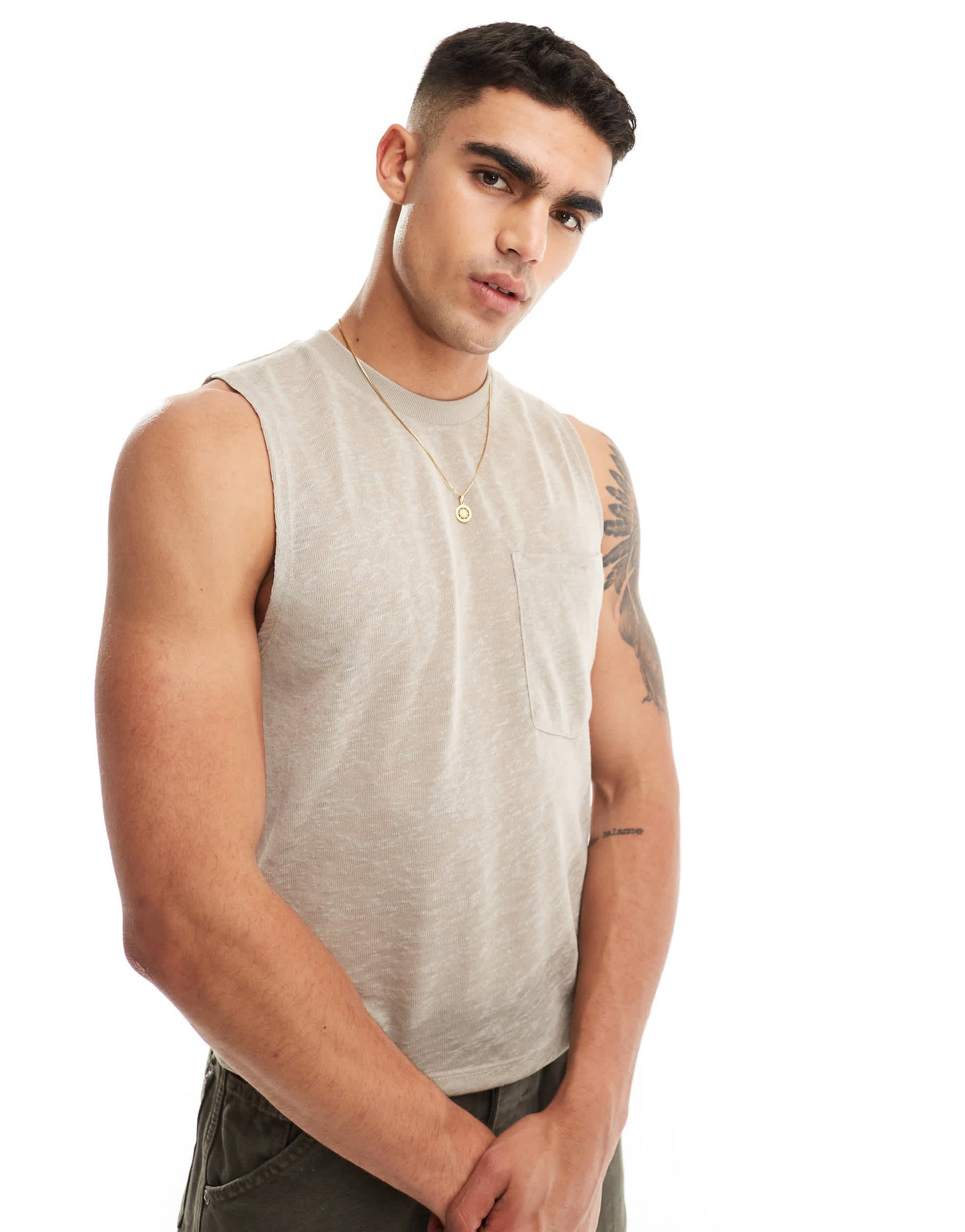 ASOS DESIGN cropped sheer vest with front pocket in stone