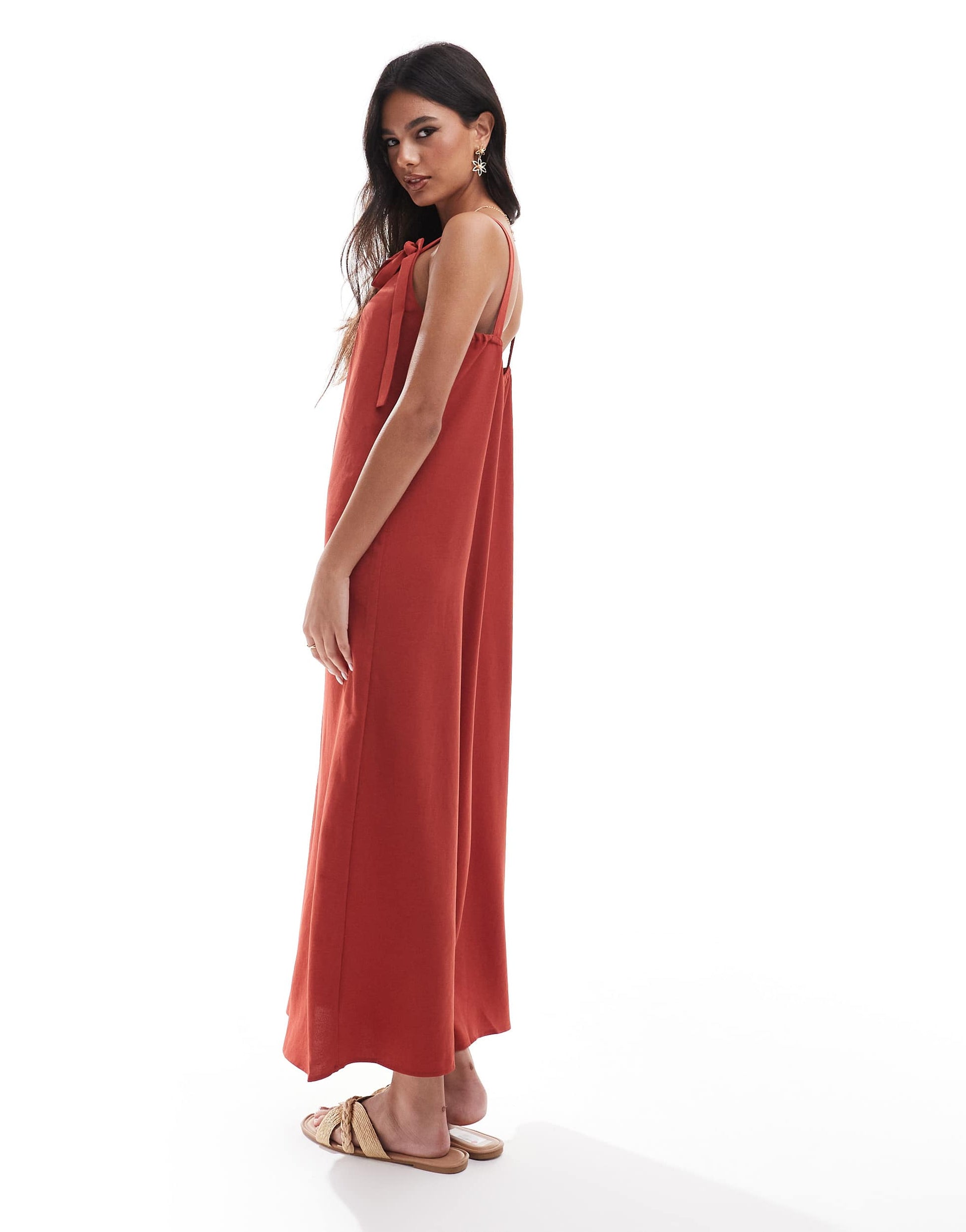 ASOS DESIGN cupro tie detail strappy cami midi dress in terracotta