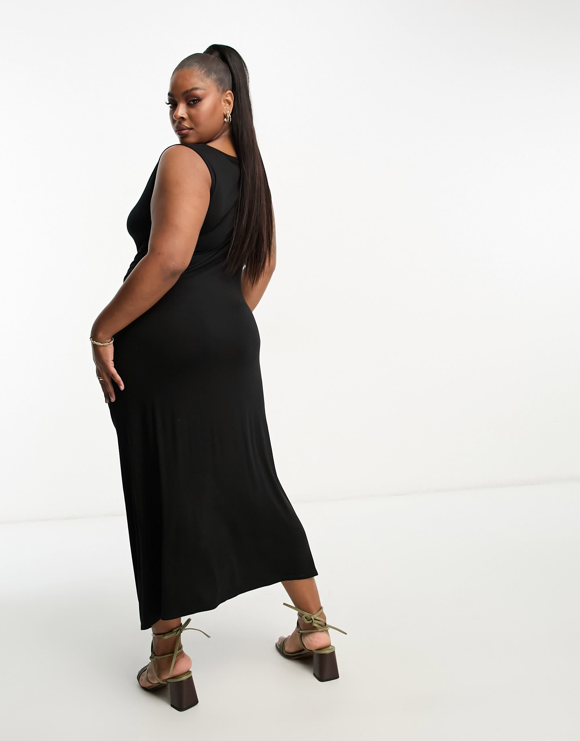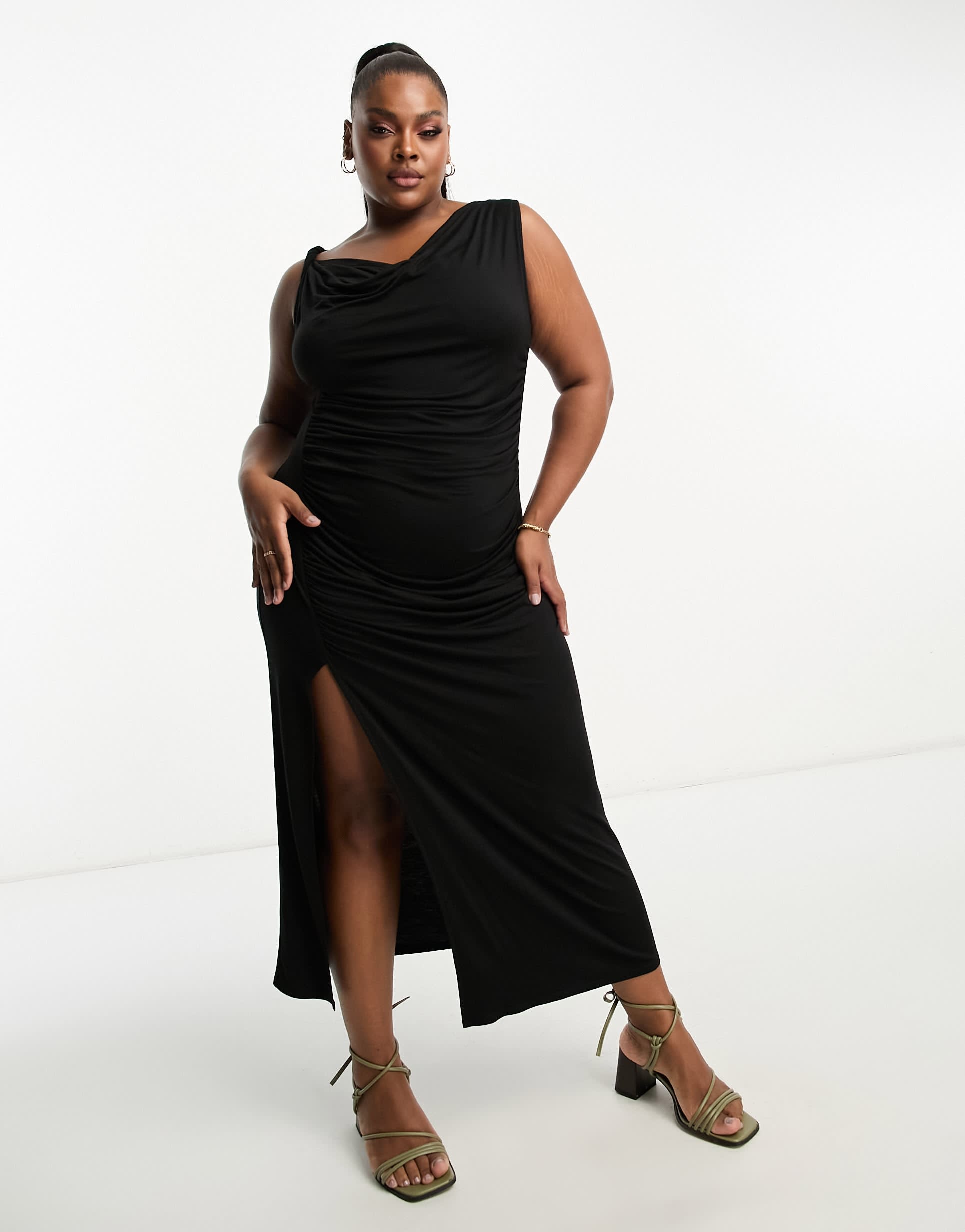 ASOS DESIGN Curve cowl neck drape detail midi dress in black