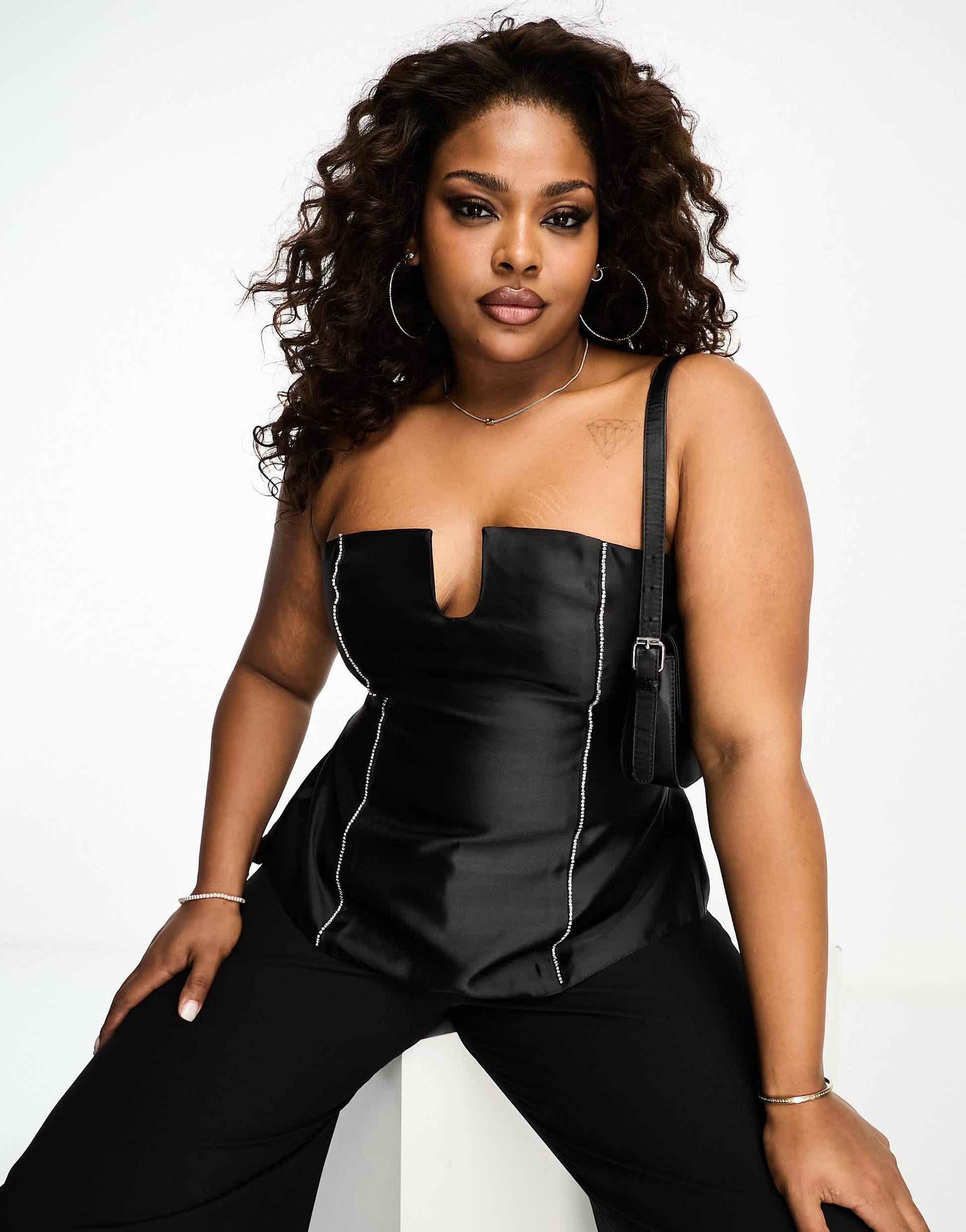 ASOS DESIGN Curve longline corset with diamante trim in black
