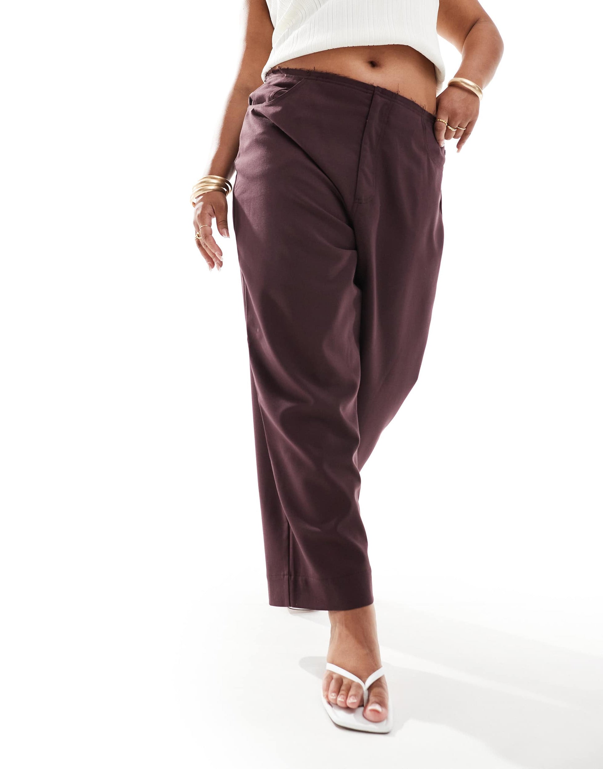 ASOS DESIGN Curve raw edge trouser in burgundy
