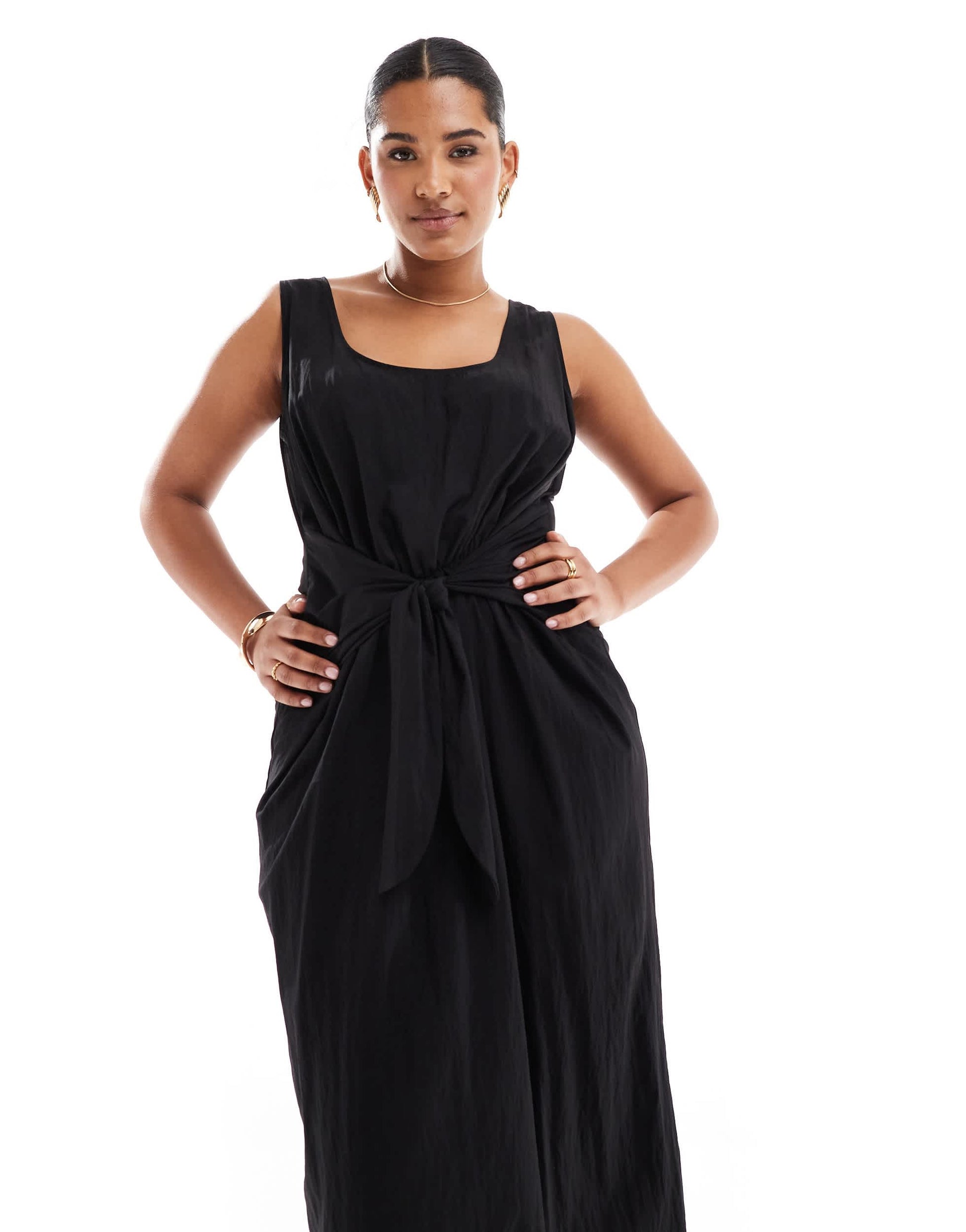 ASOS DESIGN Curve scoop neck tie front midi dress