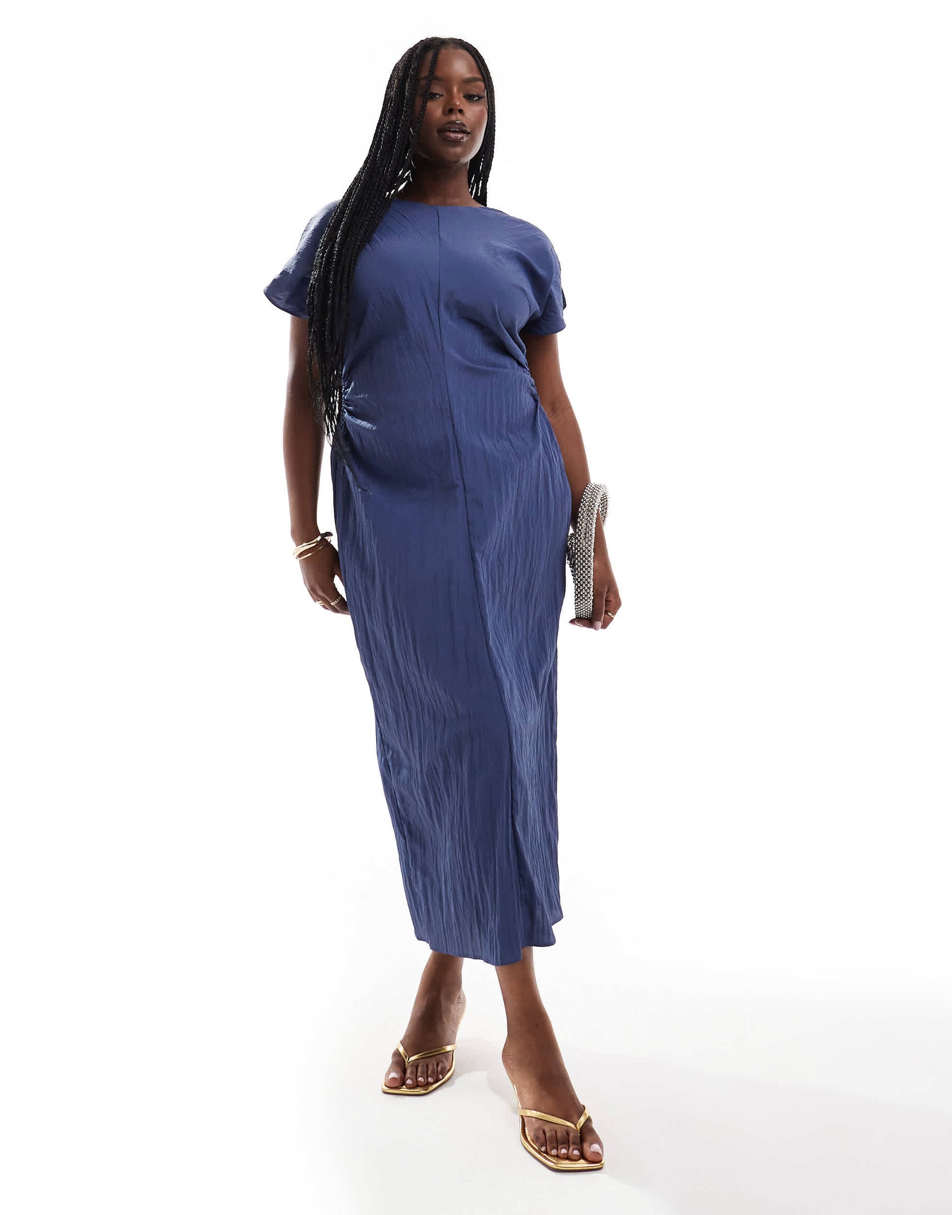 ASOS DESIGN Curve split cap sleeve cut out midi dress in washed blue