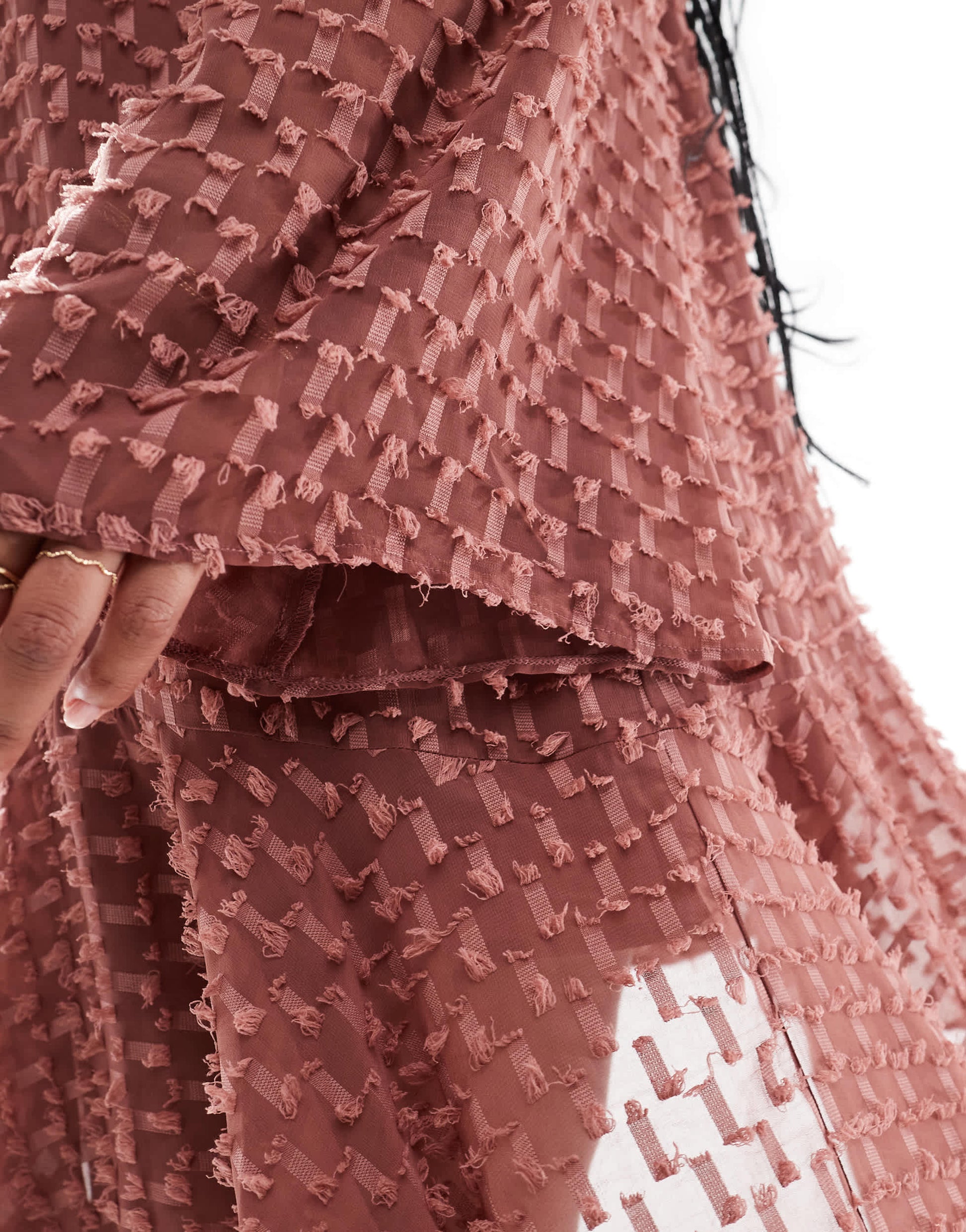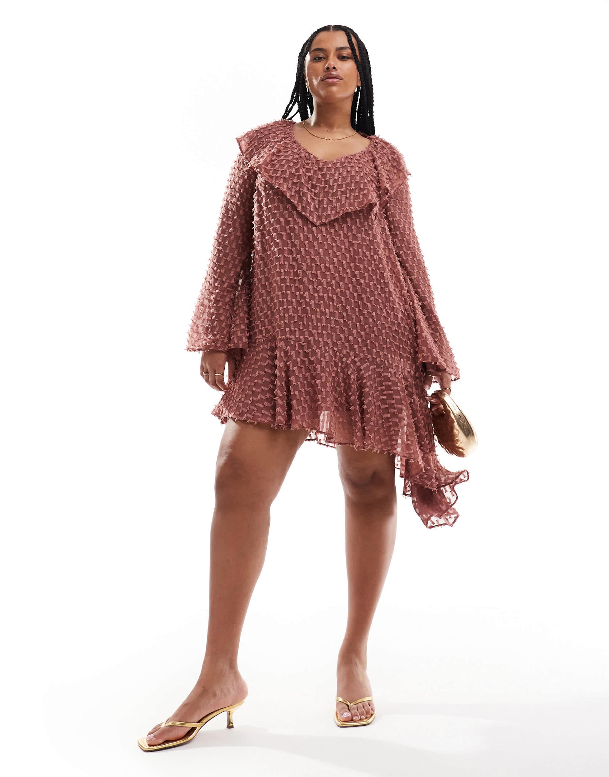 ASOS DESIGN Curve v neck asymmetric hem dobby mini dress in rose