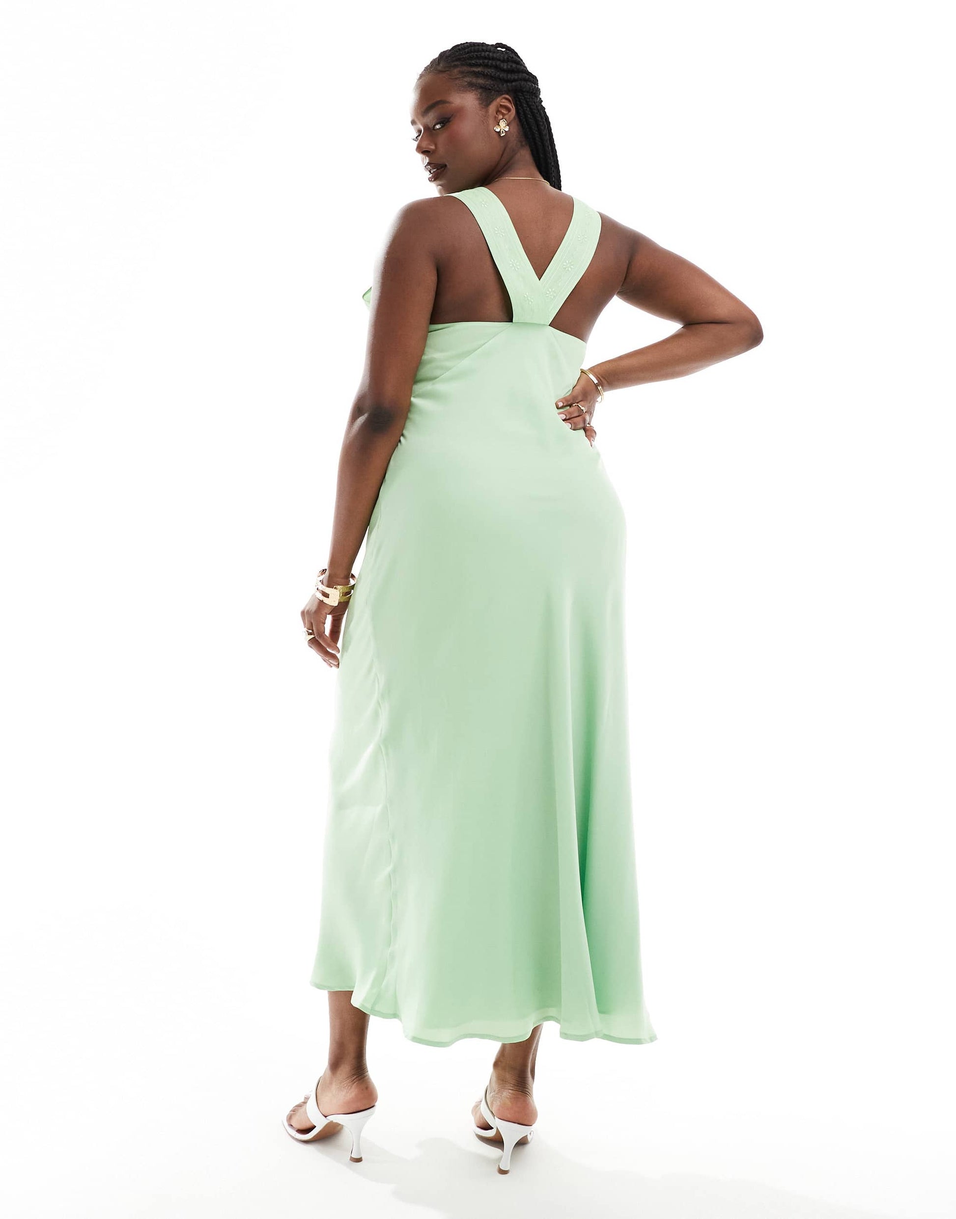 ASOS DESIGN Curve vintage style V neck midi slip dress with delicate embroidery in sage