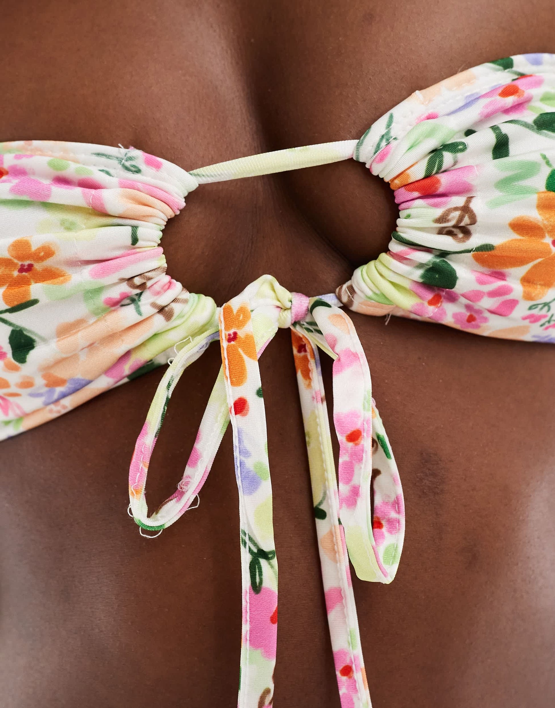 ASOS DESIGN cut-out bandeau bikini top in scribble floral print