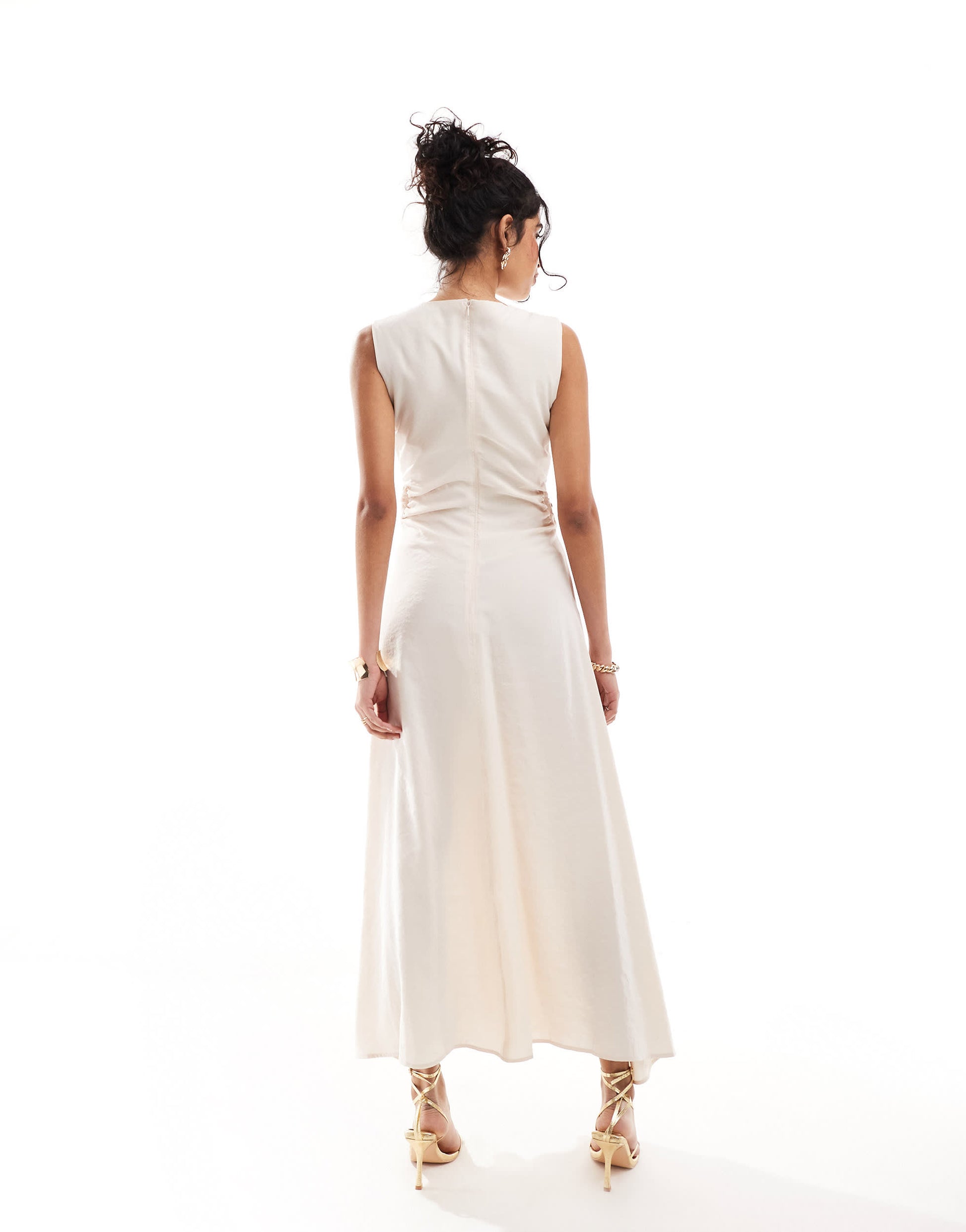 ASOS DESIGN cut out ring detail in waist midi dress in stone