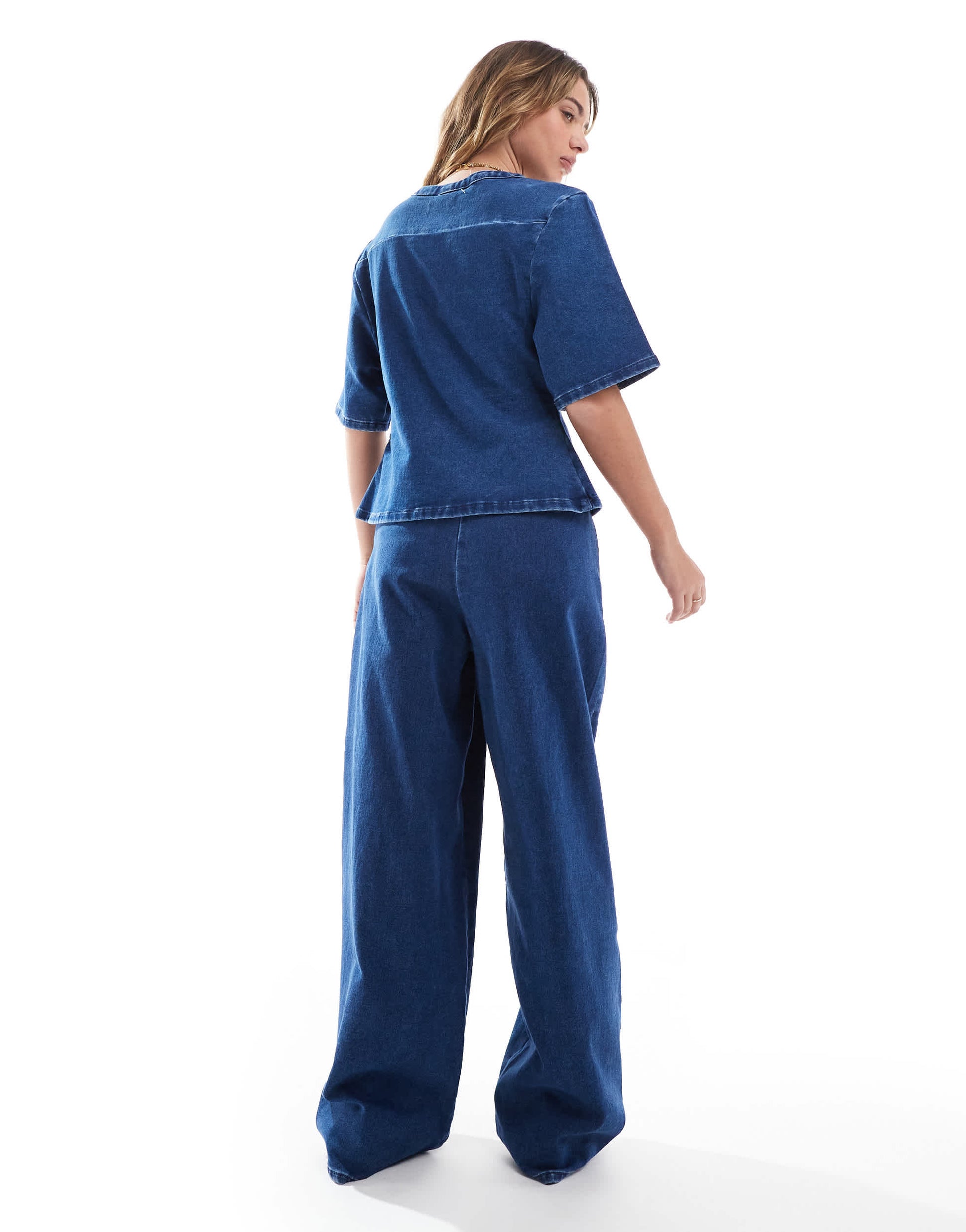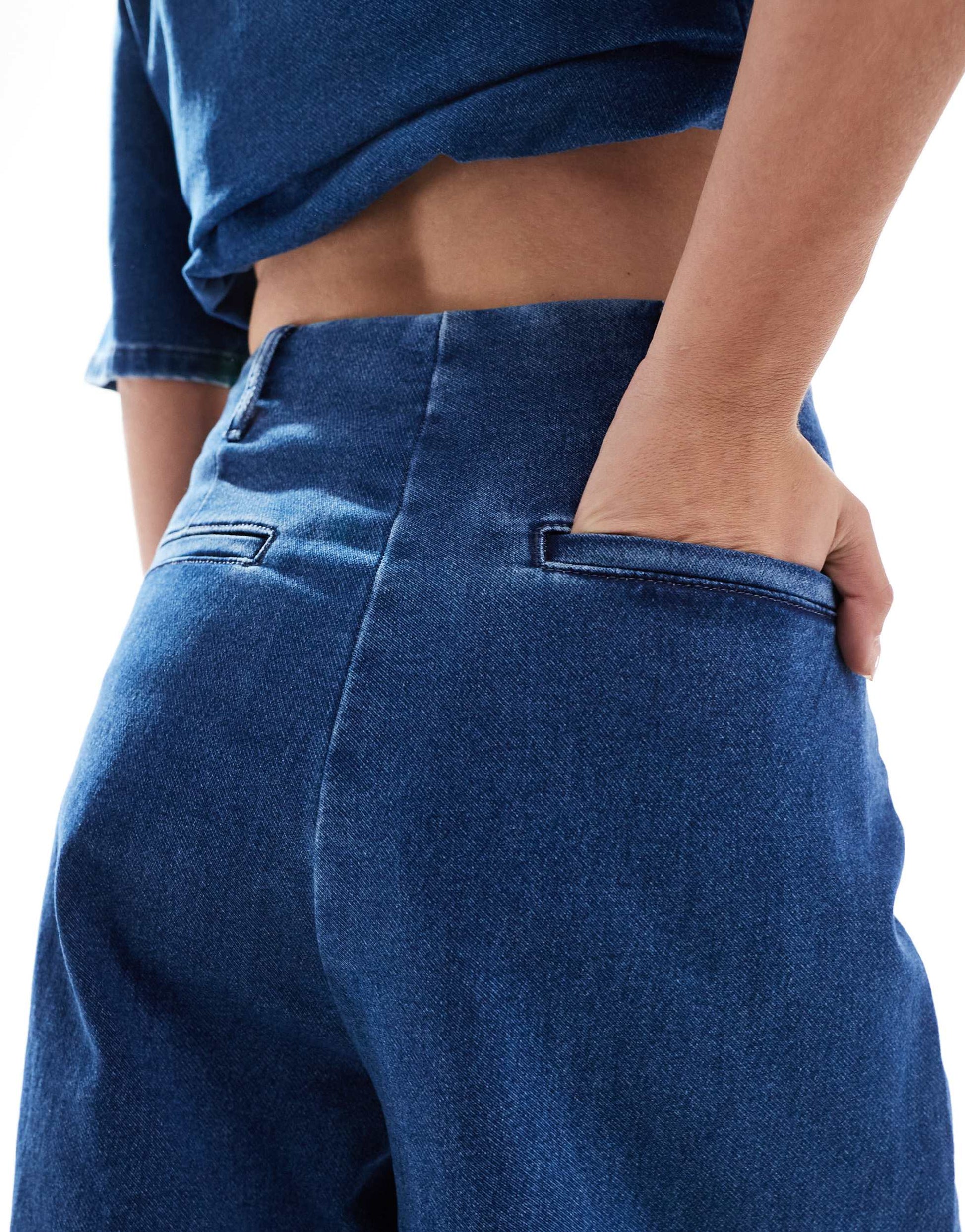 Non-stretch denim: mid-blue wash Main: 82% Cotton, 16% Polyester, 2% Elastane.